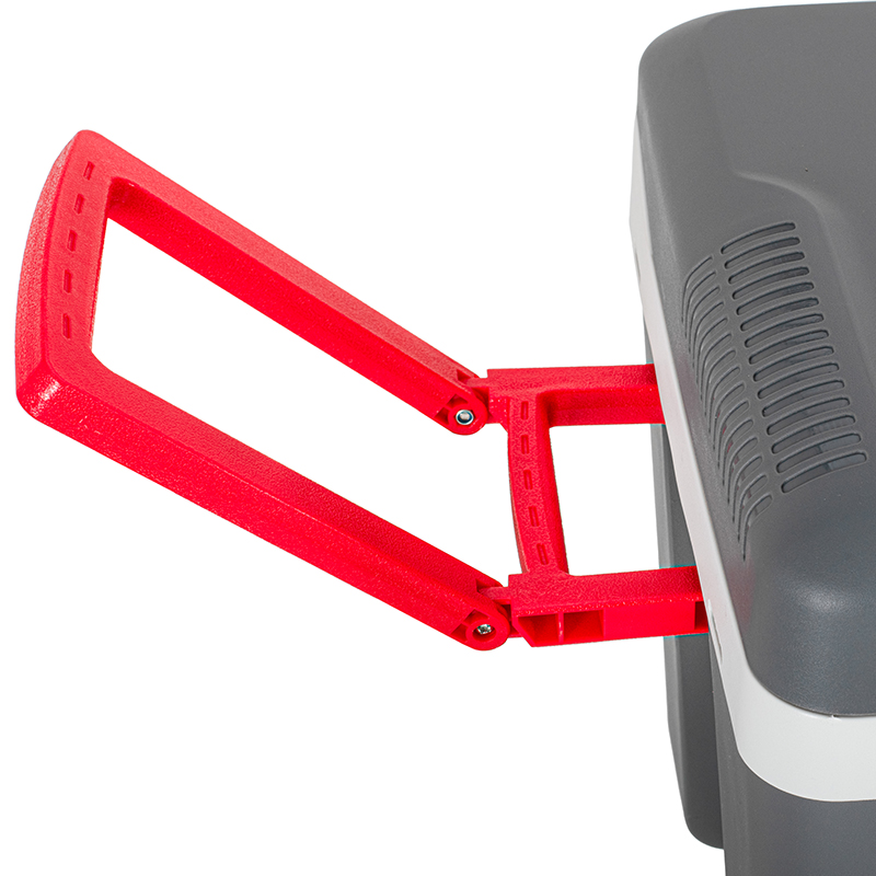 O lada frigorifica trebuie sa fie mobila si usor de transportat. Acest model a fost conceput pentru a nu te incurca in timpul transportului - este dotat cu roti de transport care usureaza mutarea frigiderului si cu un maner ergonomic si pliabil, de asemenea de mare ajutor in timpul transportului.