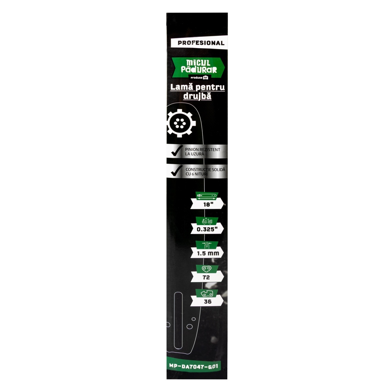 - Compatibilitate cu drujbe care folosesc pas .325” și canal 1.5 mm