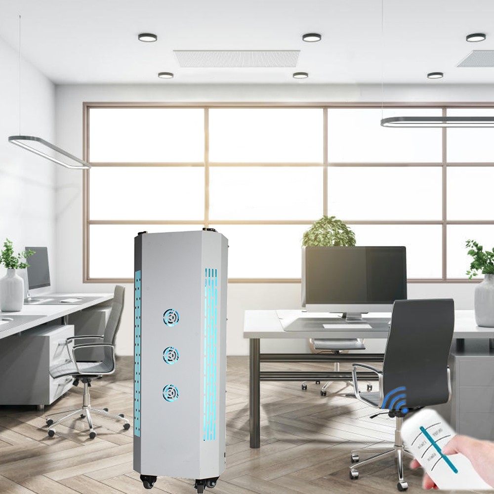 Lampa bactericida utilizeaza tehnologia cu lumina UVC care asigura o dezinfectie deplina a incaperii in prezenta personalului uman, fiind potrivita pentru spitale, clinici, birouri, sali de conferinta, sali de asteptare sau multe altele. Datorita puterii mari de 300W, lampa are capacitatea de a steriliza incaperi de pana la 300 mp. Prin emisia de radiatii UVC cu lungimea de unda de 254 nm, dispozitivul actioneaza la nivelul structurilor ADN si ARN ale microorganismelor, stopand astfel inmultirea acestora prin uciderea bacteriilor.