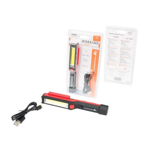 Lampa de lucru LED COB 2W 900mAh Automax, 120-150lm, 168x23x30 mm, sistem fixare magnetic