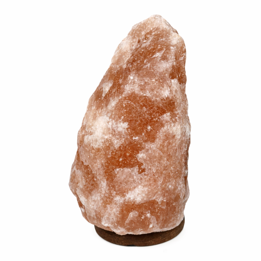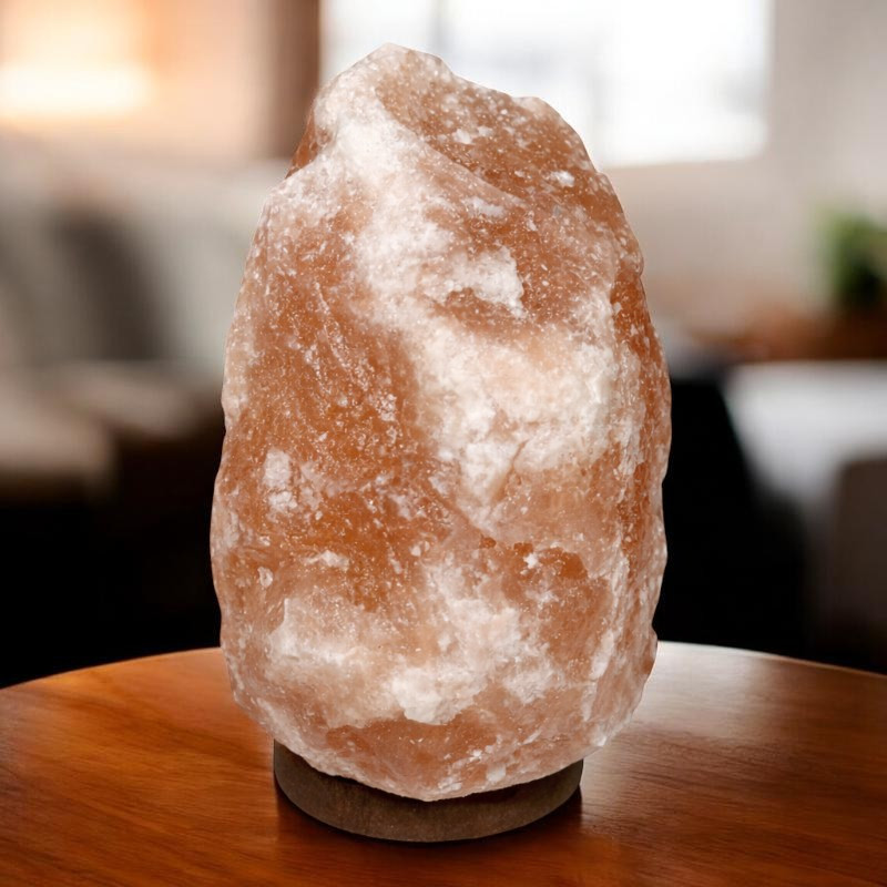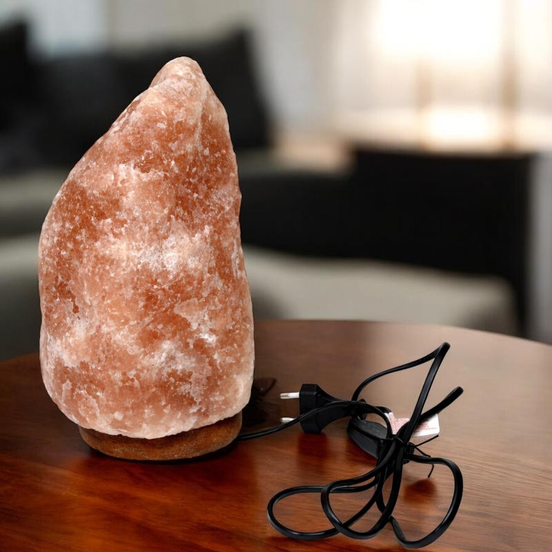Adauga un plus de caldura si stil casei tale cu aceasta lampa de sare naturala, realizata din cristal autentic, cu nuante placute de chihlimbar. Emite o lumina calda, discreta, perfecta pentru seri linistite, iar baza din lemn natural ii ofera stabilitate si un aspect elegant. Fiecare piesa este unica, cu forma si textura usor diferite, datorita materialului natural.