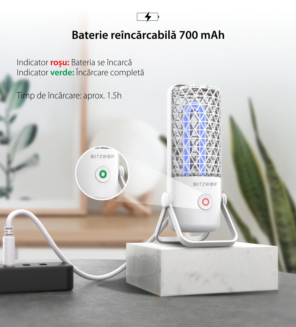 Lampa de sterilizare BlitzWolf BW-FUN4, Portabila, Ultraviolete si ozon, Baterie 700 mAh SmartElectro IntelligentHouse