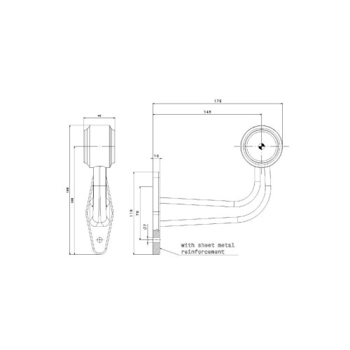 - Braț: 175 mm (de la suprafața de prindere la centrul dispersorului), cot 90°