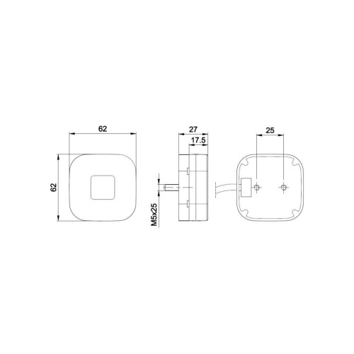 Lampă gabarit LED galbenă 62x62 mm 12-36V Fristom FT-027-Z, omologare E20