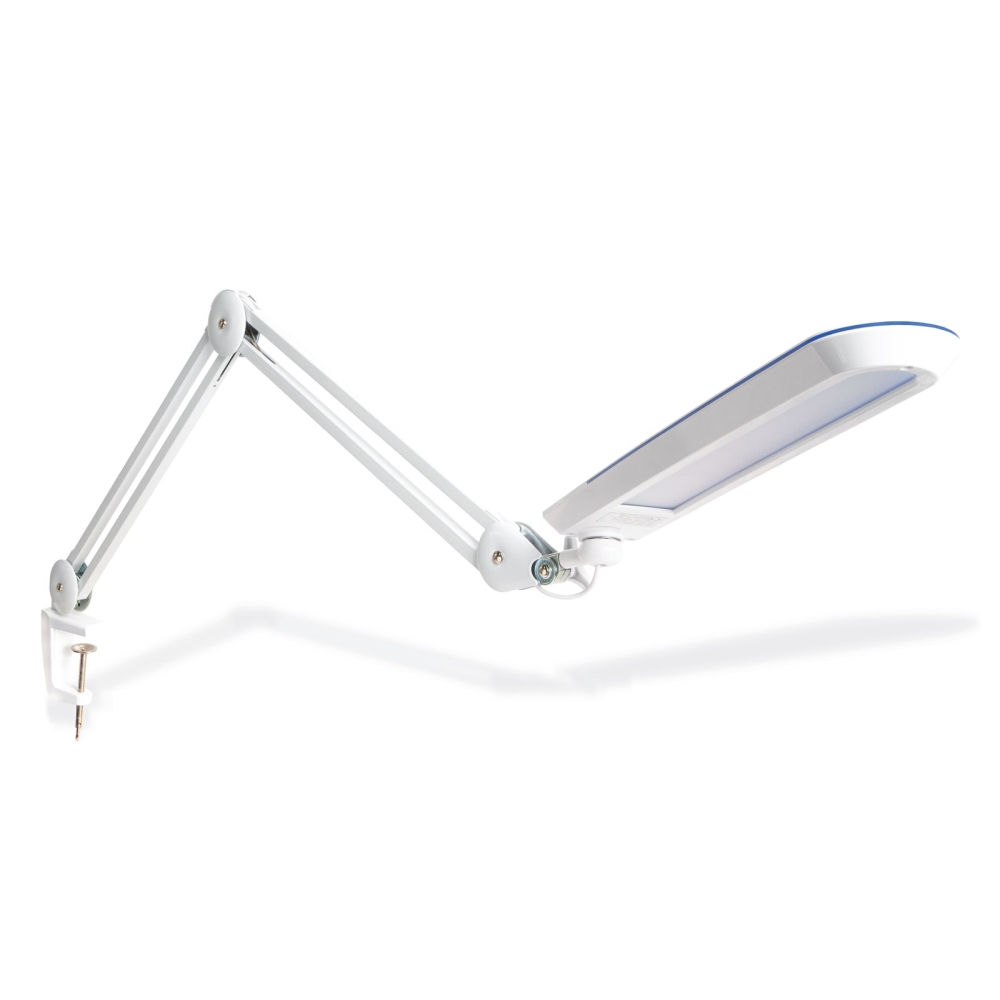 Iluminează-ți masa cu această lampă mare și puternică. Cadrul metalic al lămpii are puncte de balamale în mai multe locuri, astfel încât poate fi reglat la orice înălțime și unghi. Datorită luminozității puternice a lămpii, este potrivită și pentru iluminarea meselor mari. Luminozitatea poate fi reglată în 4 niveluri, astfel încât să puteți regla oricând cantitatea de lumină necesară pentru sarcina curentă. Banda luminoasă decorativă de pe partea laterală a capului lămpii conferă lămpii un aspect elegant, plasată în orice interior. Fixarea cu o clema reglabila garanteaza ca lampa este compatibila cu blaturi de masa mai groase, si ca este atasata stabil de marginea blatului mesei, astfel incat sa nu ocupe mult spatiu pe masa.