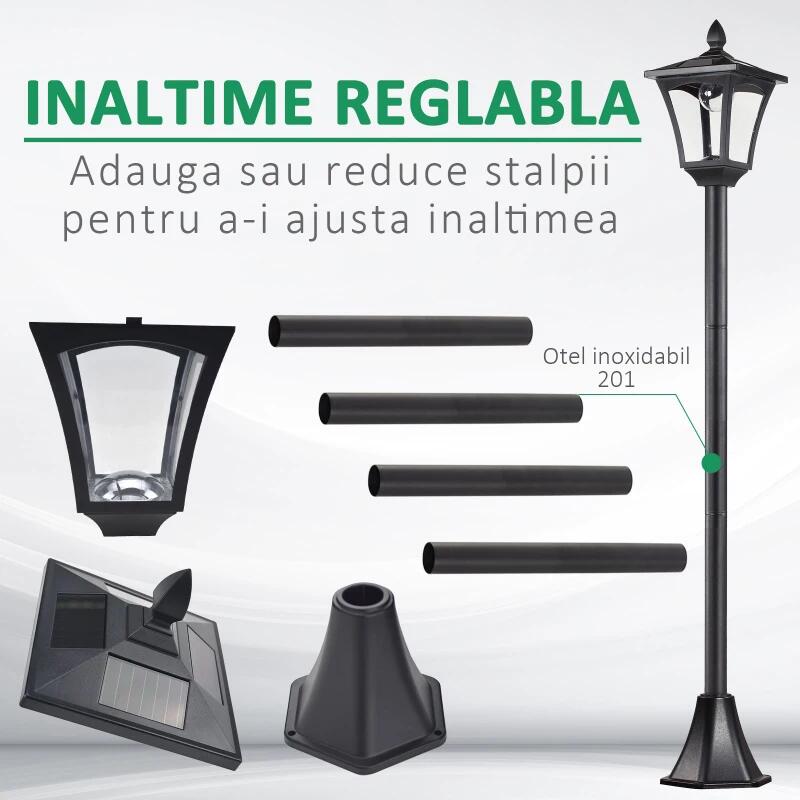 Lampa solara tip felinar pentru gradina, 1 LED, 18x18x160 cm