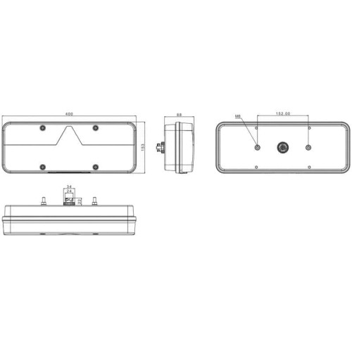 Lampă stop LED dreapta Fristom FT-500-25, 400x153 mm, 6 funcții, 12–36V
