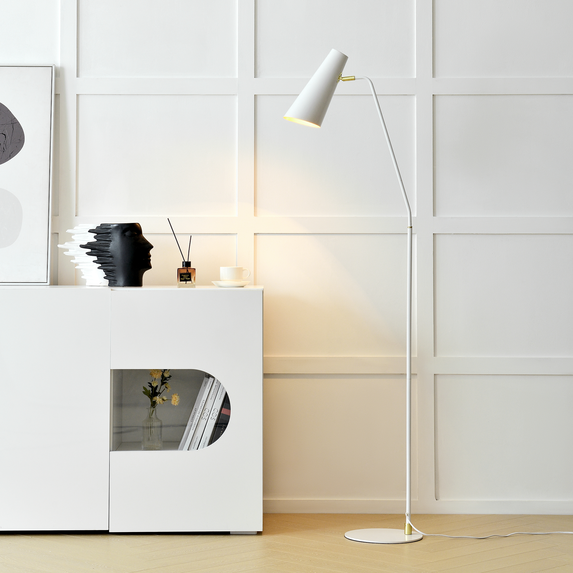Lampadarul Norwich aduce un plus de eleganta in orice incapere prin liniile sale curate, finisajul alb si detaliile moderne. Este alegerea potrivita pentru living, dormitor, birou sau coltul de citit, oferind un iluminat placut si un aspect decorativ rafinat.