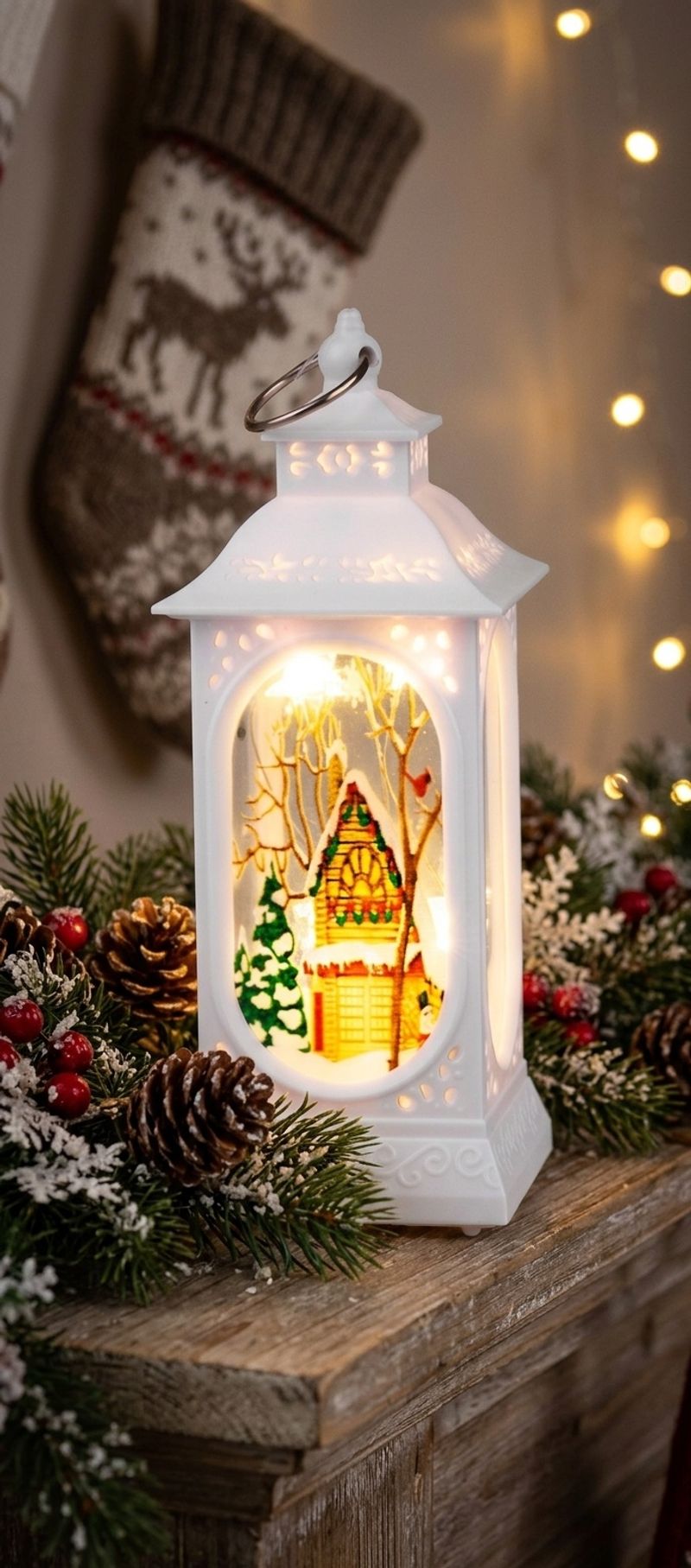 Adaugă un plus de farmec sărbătorilor cu acest lampaș decorativ de Crăciun MagicHome, perfect pentru a crea o atmosferă caldă și primitoare în orice colț al casei. Designul elegant, în nuanță albă, cu motiv de iarnă și iluminare LED alb cald, îl transformă într-un accesoriu ideal pentru masa festivă, pervaz, raft sau birou.