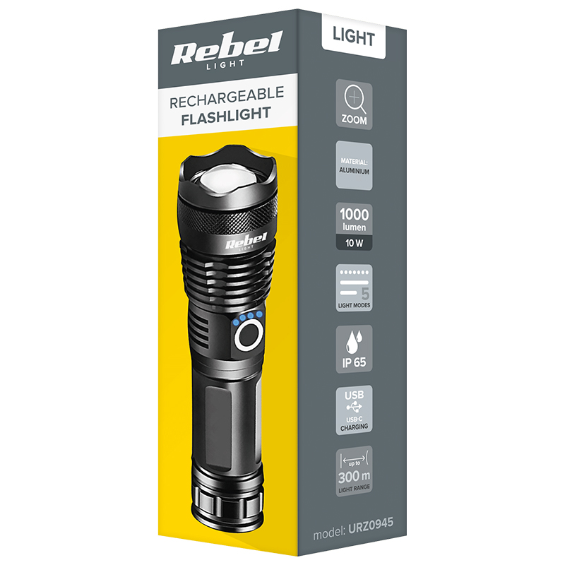 LANTERNA 10W 1000 LM IP65 ACUMULATOR 26650 REBEL EuroGoods Quality