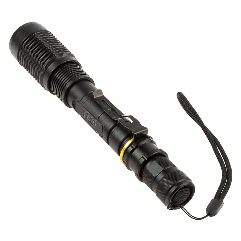 Lanterna metalica TED Electric, LED CREE T6, functie zoom, include 2 acumulatori 18650 Li-Ion, carcasa aluminiu, grad protectie IP65, incarcator auto 12V si de retea 230V