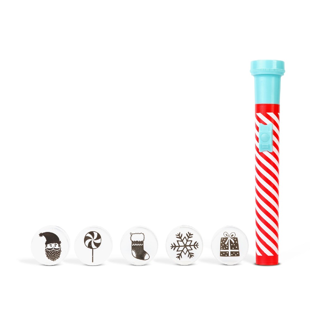 Prevăzută cu 5 tipare luminoase interschimbabile (Moș Crăciun, fulg de nea, șosetă de Crăciun, cadou și acadea), lanterna proiectează imagini luminoase pe pereți, fațade sau alte suprafețe, aducând instant atmosfera sărbătorilor.