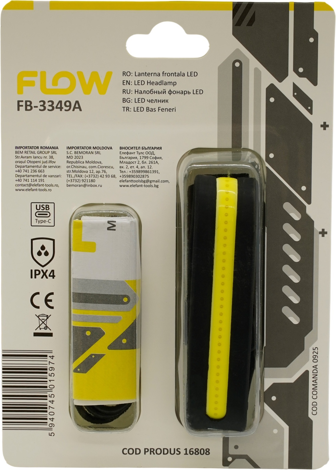 Lanternă frontală LED Flow FB-3349A cu senzor de mișcare și USB-C