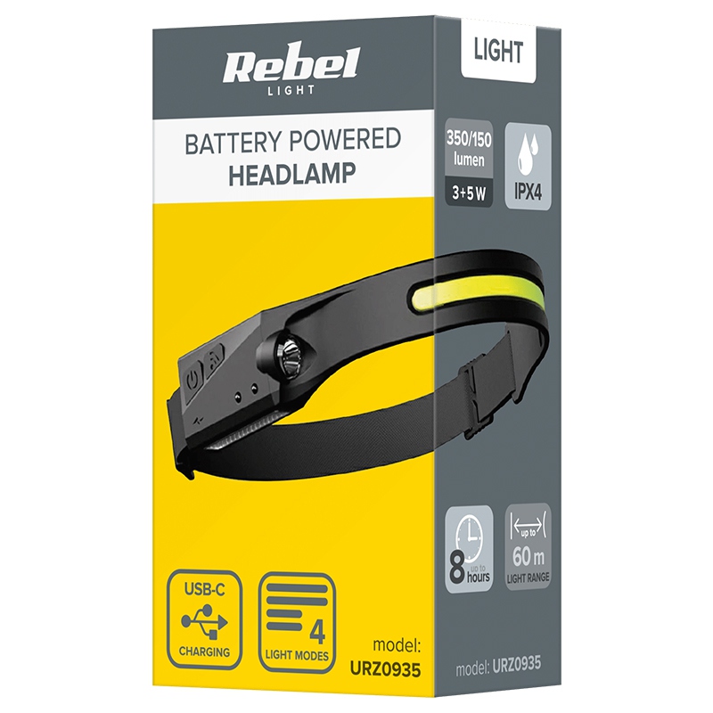 Lanternă frontală Rebel 3W LED + COB 5W, 350 lm, USB-C, IPX4