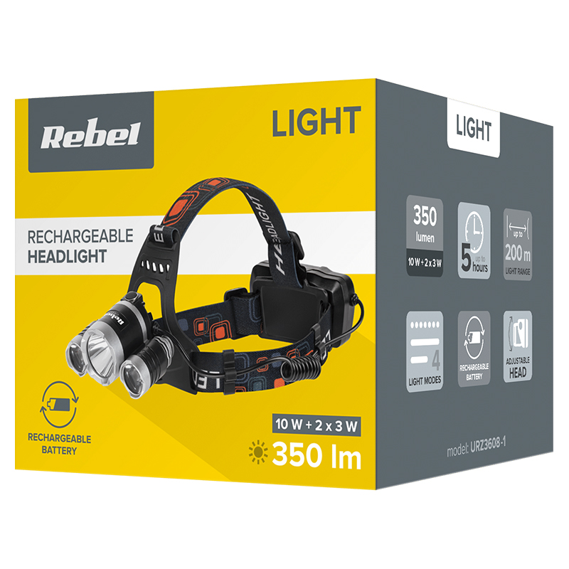 LANTERNA FRUNTE ACCU 10W + 2X 3W 350LM REBEL EuroGoods Quality