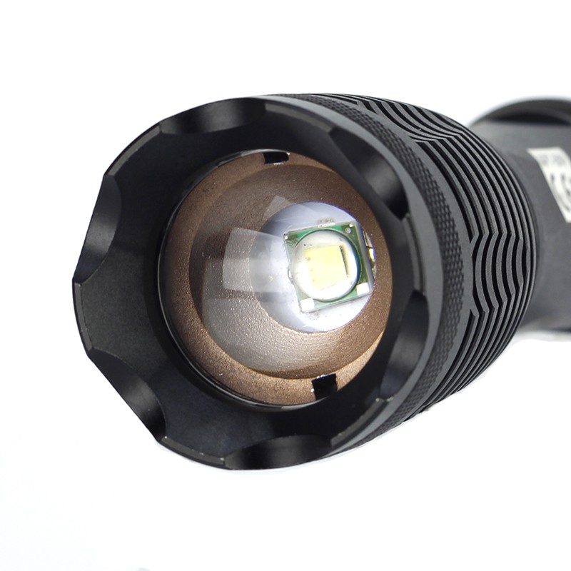 Lanterna este prevazuta cu LED CREE cu un flux luminos de 1800 lumeni si o putere de 10W. Aceasta lumineaza pe o distanta de pana la 800 metri si este prevazuta cu functie Zoom care va permite sa focalizati lumina intr-un anumit punct.