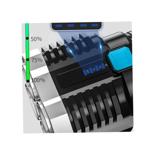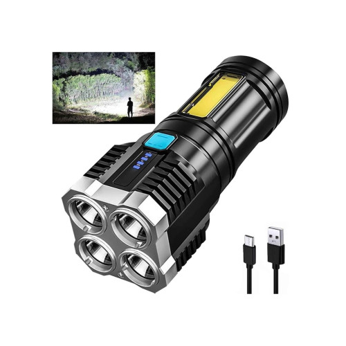 Fii pregătit în orice situație cu o lanternă tactică reîncărcabilă, compactă și ușor de folosit. Are 4 LED frontale pentru fascicul puternic și COB lateral pentru iluminare largă, ideală la camping, pescuit, service sau în caz de urgență.