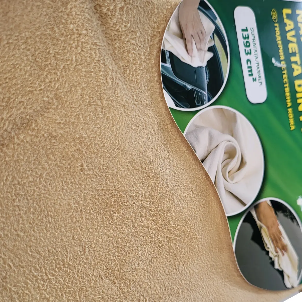 Laveta din piele naturala cu forma neregulata, suprafata aproximativ 1393 cm2 are proprietati de absortie marite, este perfecta pentru uscarea autoturismului dupa spalare, lasand suprafata curata si fara pete.