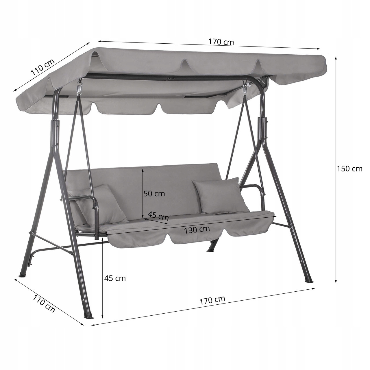 - Dimensiuni totale: 170 x 110 x 150 cm