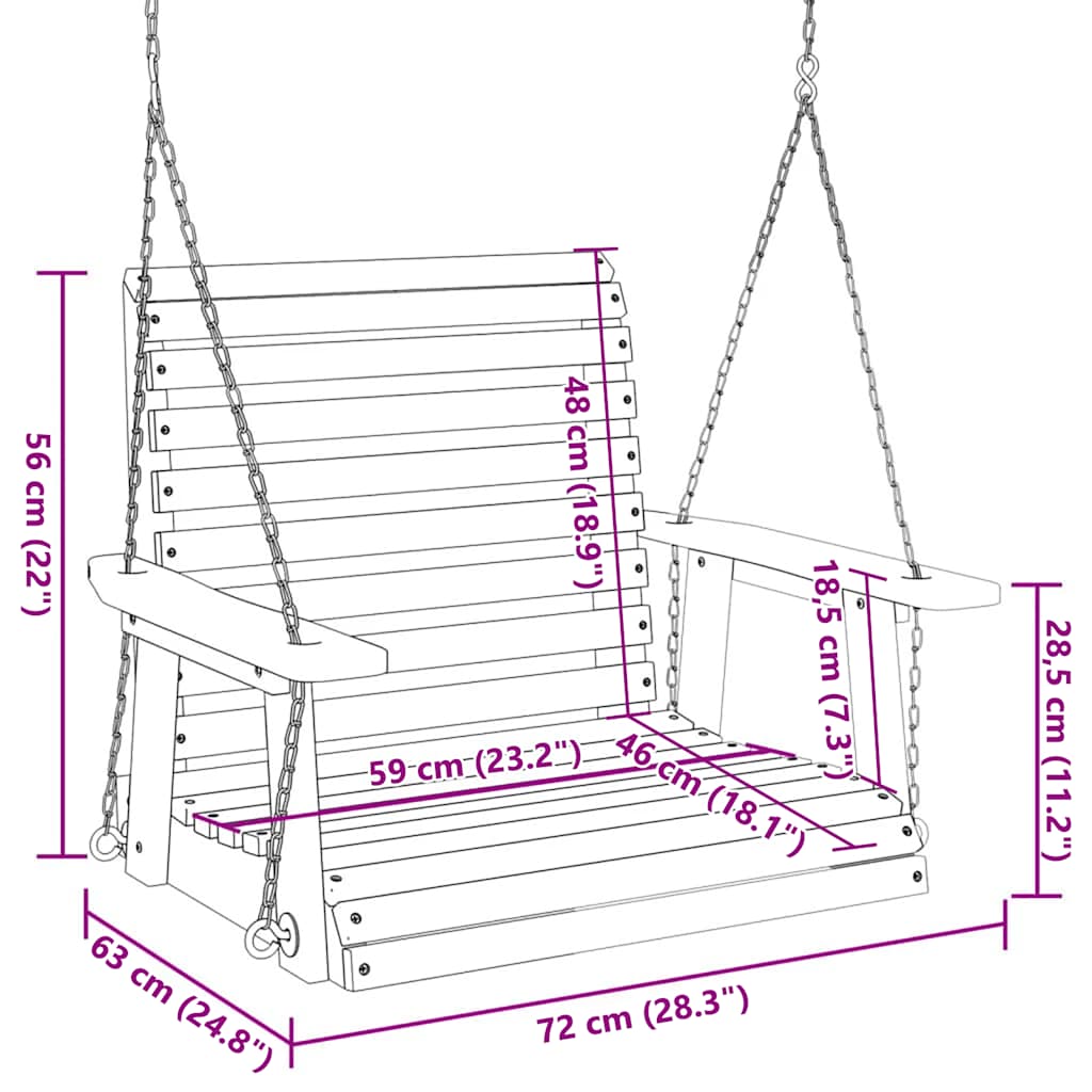Leagăn de grădină cu lanțuri metalice, negru, lemn masiv brad GartenMobel Dekor