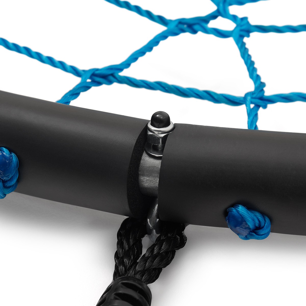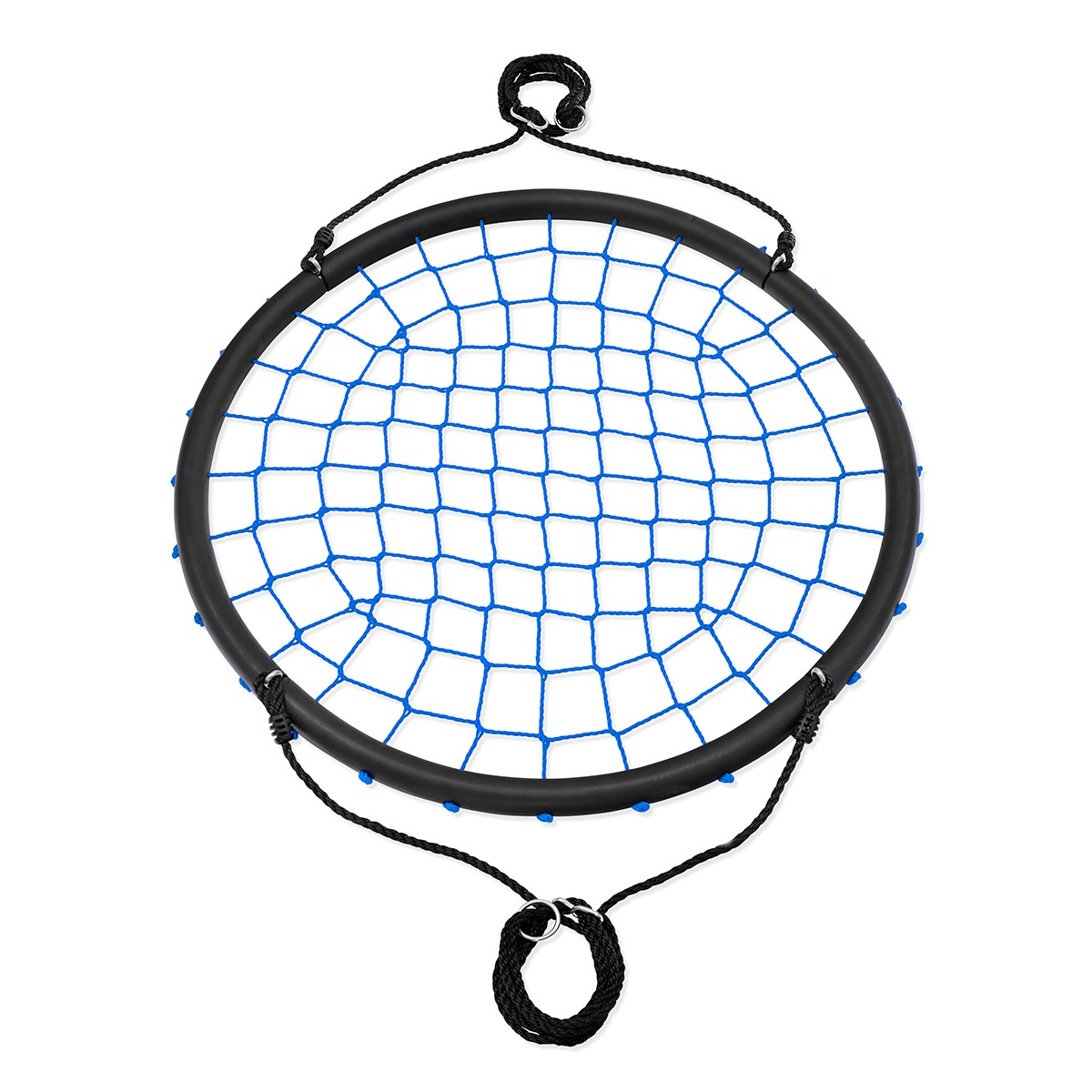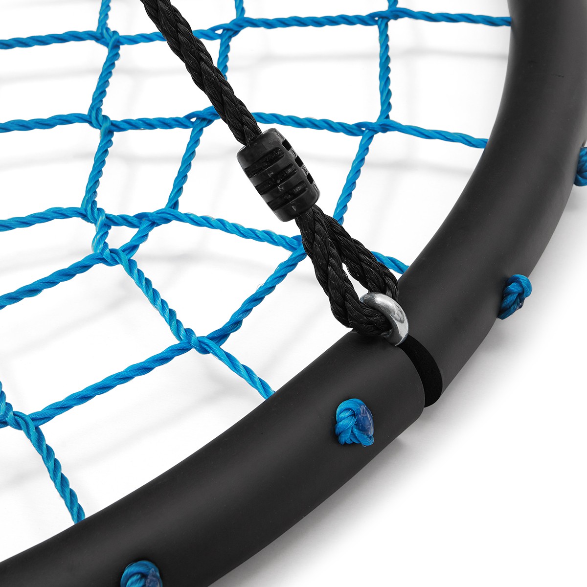 Perfect pentru a fi atarnat in gradina, pe terasa sau pe balcon. In caz de vreme rea, poate fi agatat si in casa. Asamblarea este foarte simpla, asa ca in doar cateva momente acesta va fi gata de joaca. Leaganul are un diametru de 100 cm, ceea ce inseamna ca poate gazdui mai multi copii pe acesta. Acesta este, fara indoiala, un avantaj, deoarece stim cu totii ca este mai distractiv in compania altor persoane. Datorita posibilitatii de a regla lungimea franghiilor de fixare, putem ajusta inaltimea produsului la inaltimea utilizatorului. Combinat cu o limita de greutate a utilizatorului de 150 kg, acest lucru spune faptul ca acesta poate fi utilizat atat de tineri cat si de batrani.