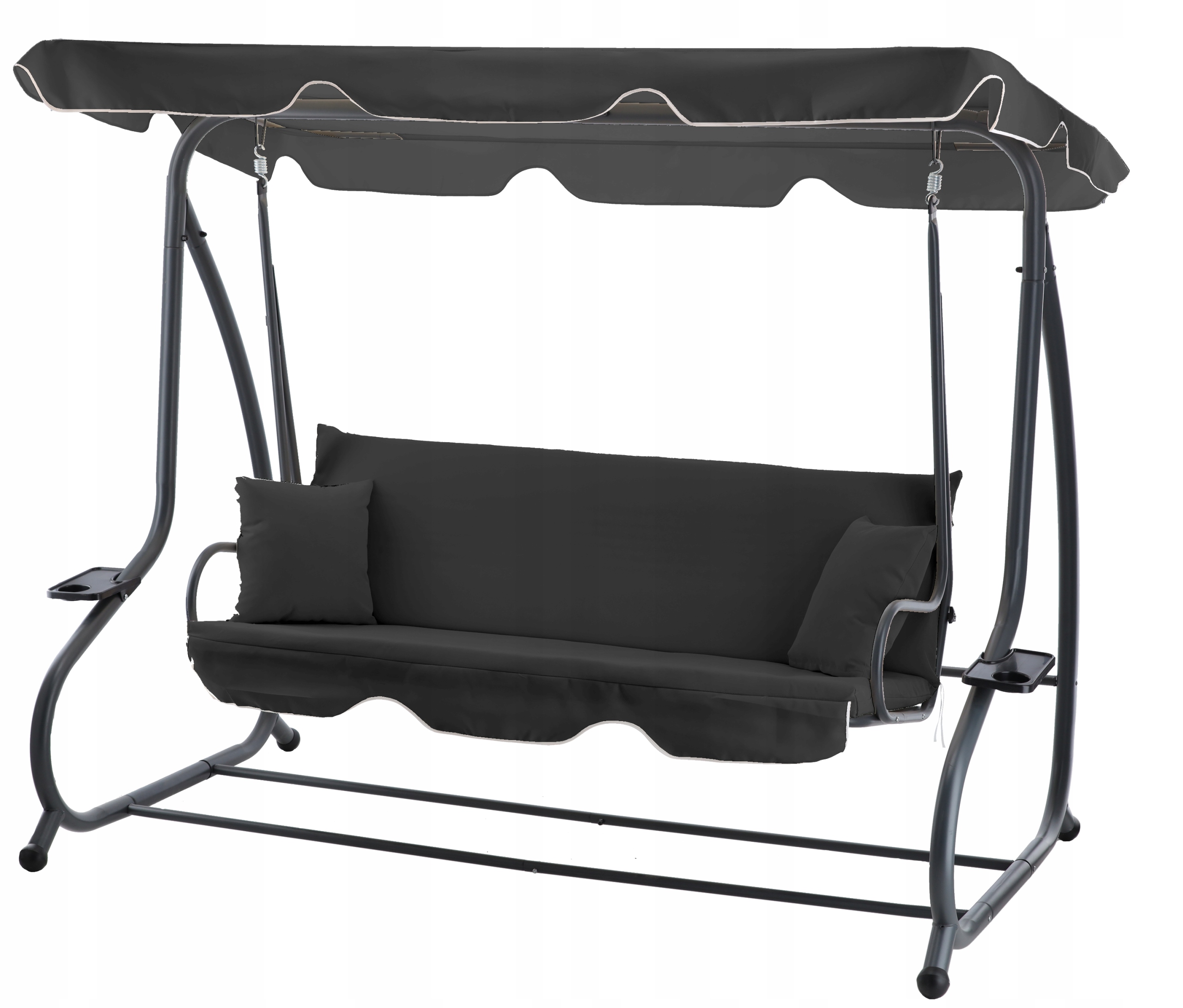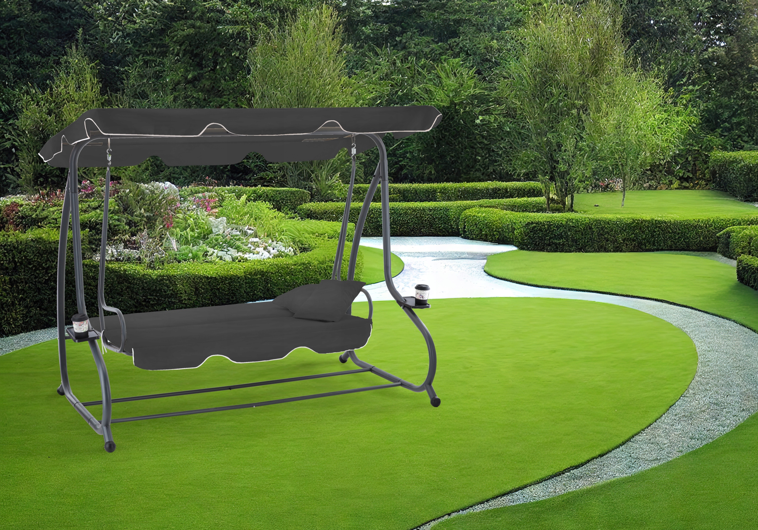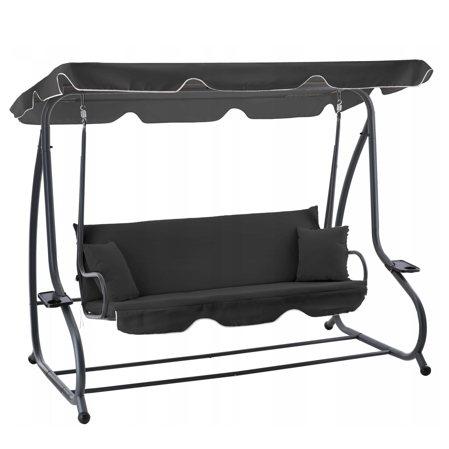Leagan gradina 3 locuri cu baldachin reglabil, perne si suport pahare, 210x120x170 cm, gri inchis Household NewTrend