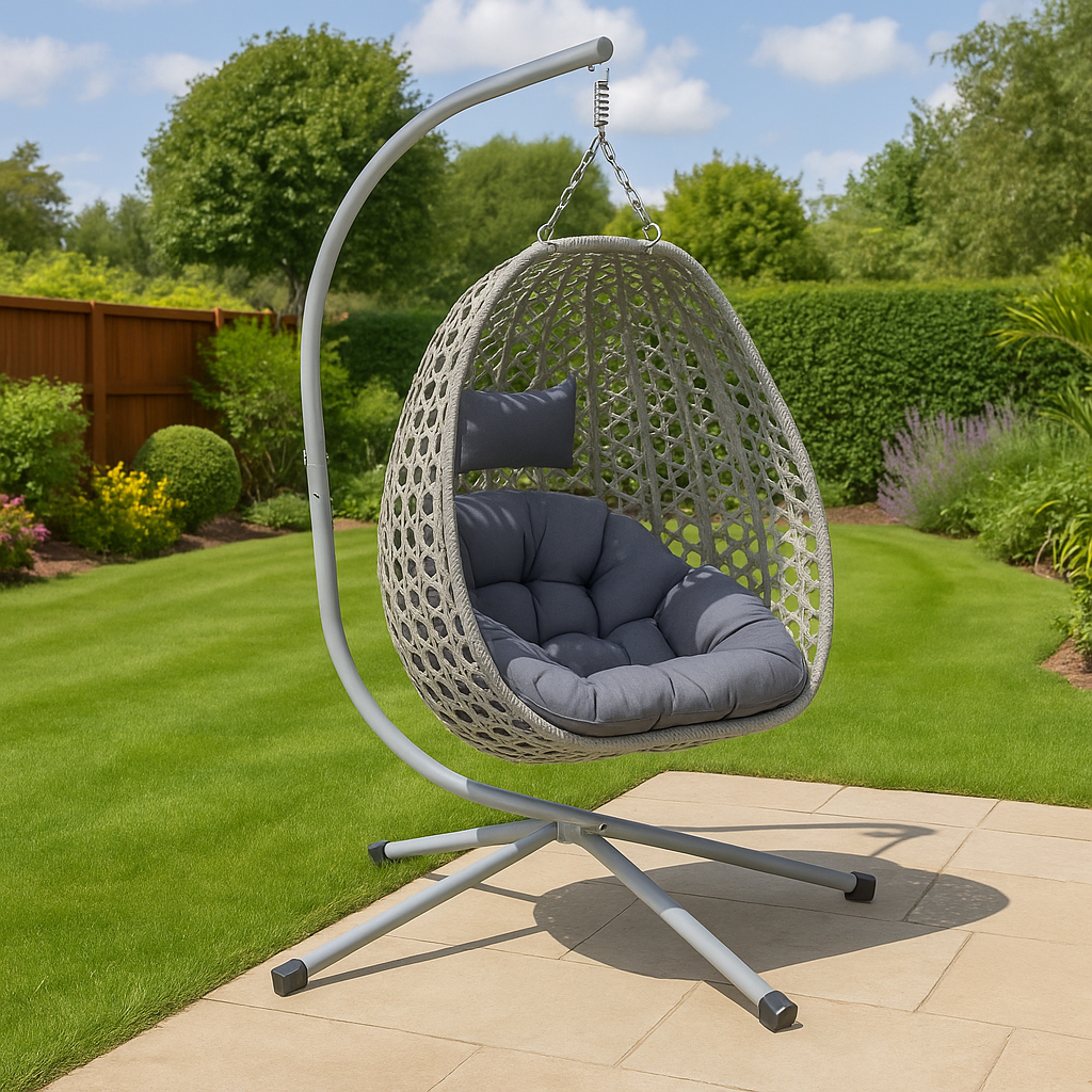 Leagan tip cuib suspendat, cu perna, cadru metalic si cos PE, 103x95x185 cm, gri Household NewTrend