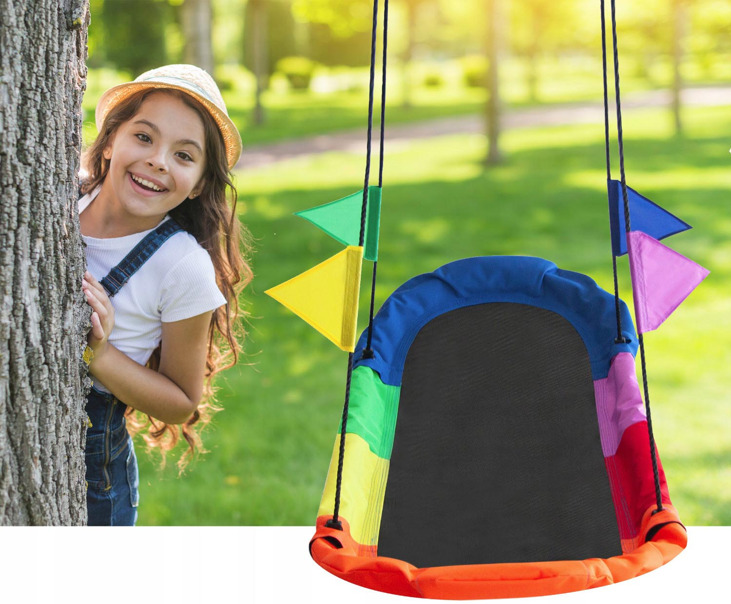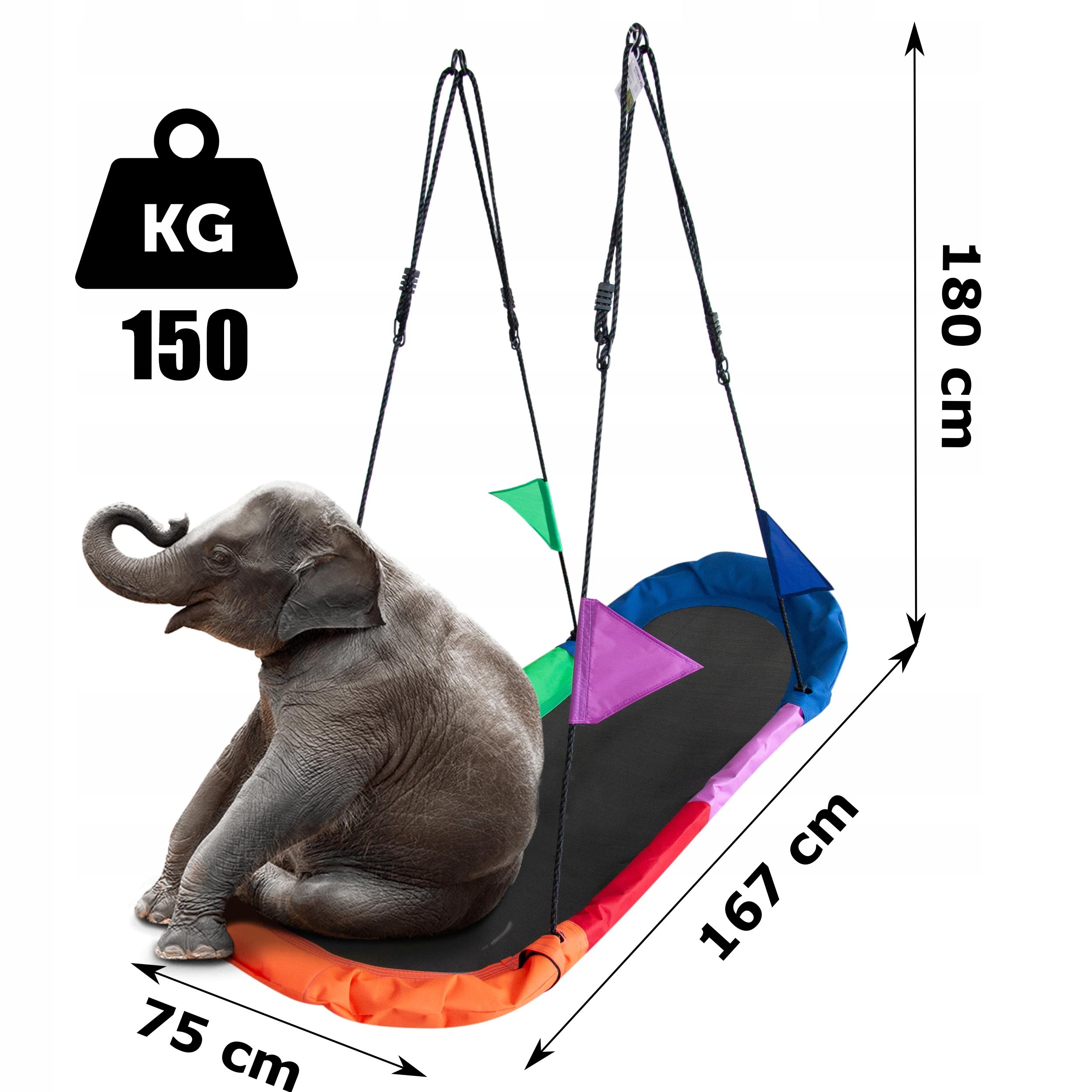 Leagan tip hamac 167x75 cm, cu rama metalica si steaguri colorate, prindere dubla, multicolor Household NewTrend