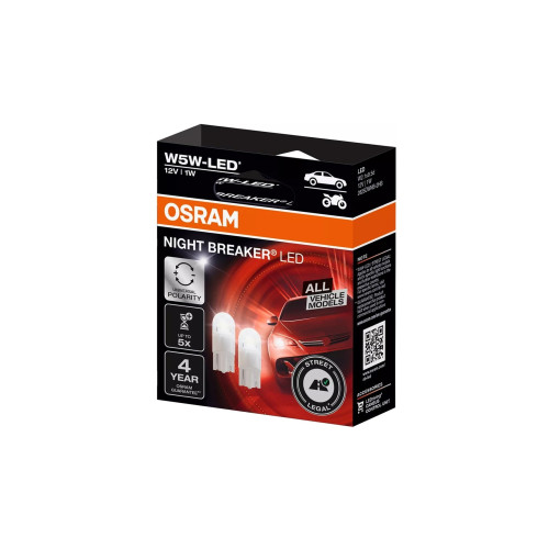 - LED-urile auto Osram W5W Night Breaker LED reprezinta prima solutie LED W5W complet omologata RAR pentru utilizarea legala pe drumurile publice.