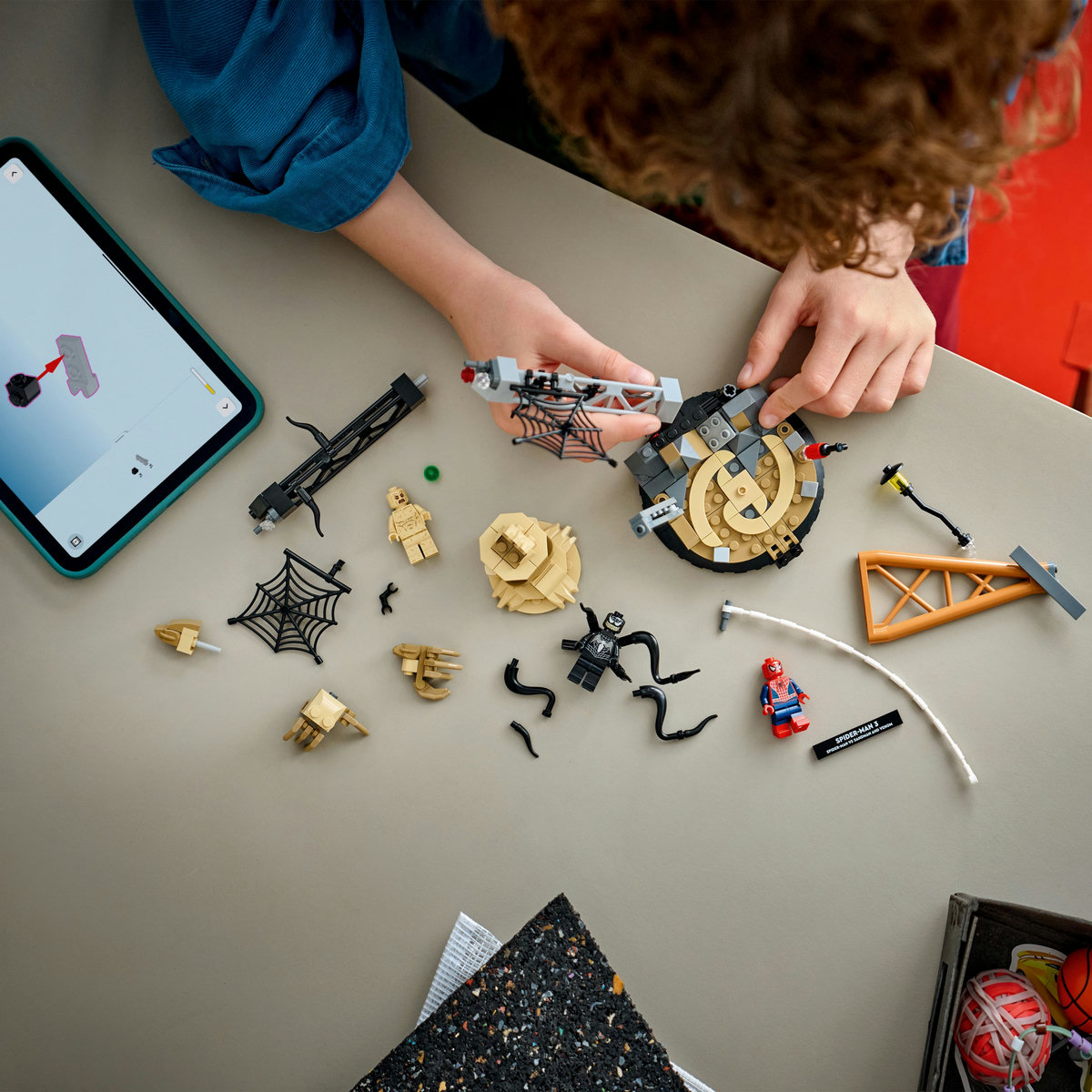 Setul include o serie de personaje din film şi o mulţime de elemente interactive: Omul Păianjen coboară dintr-un turn balansându-se pe o frânghie din pânză de păianjen; Sandman se ridică din nisip cu un braţ supradimensionat; iar Venom atacă cu 4 tentacule mobile. Copiii pot etala modelul LEGO ca decoraţiune de interior, folosind baza robustă şi plăcuţa cu nume, sau pot detaşa minifigurinele pentru a se juca creând propriile poveşti. Acest set este o idee grozavă de cadou pentru zilele de naştere ale micilor supereroi, constructori LEGO şi fani ai produselor cu Omul Păianjen. Iar cu aplicaţia LEGO Builder copiii pot construi cu încredere, apropiind, rotind modelele în 3D şi urmărindu-şi progresul pe baza instrucţiunilor digitale uşor de urmat. Setul de construcţie conţine 201 piese.
