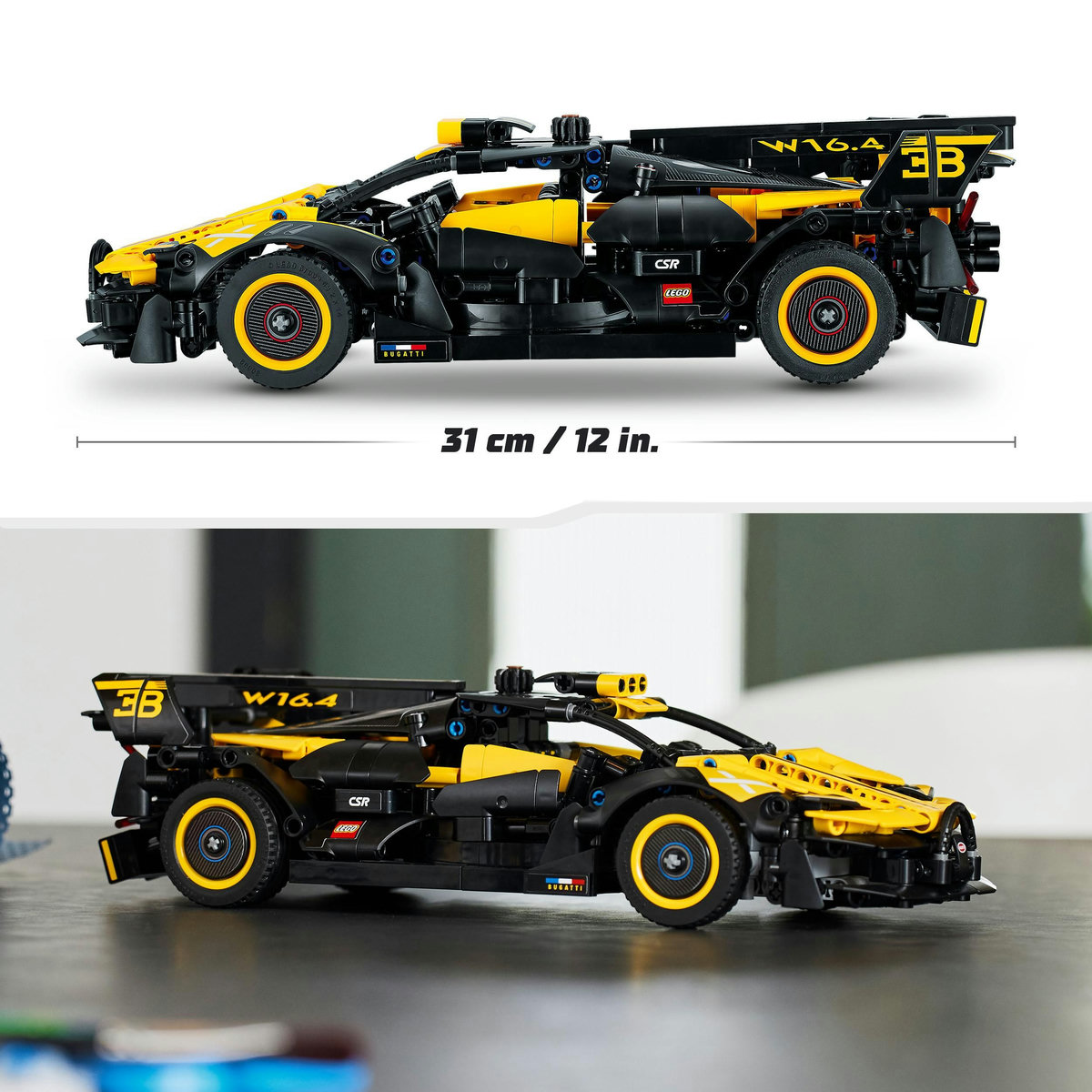 Inspiră copiii de 9 ani şi mai mari să construiască propriul model de maşină de curse cu setul LEGO® Technic Bolid Bugatti (42151). Se vor bucura de un proiect antrenant, în care trebuie să creeze toate detaliile fidele realităţii, între care un motor W16 funcţional, direcţia şi uşile foarfecă. Aspectul spectaculos al maşinii impresionează, cu o schemă de culori în galben şi negru şi stickere autentice. După construirea şi explorarea maşinii, copiii îşi pot expune cu mândrie modelul de colecţie.