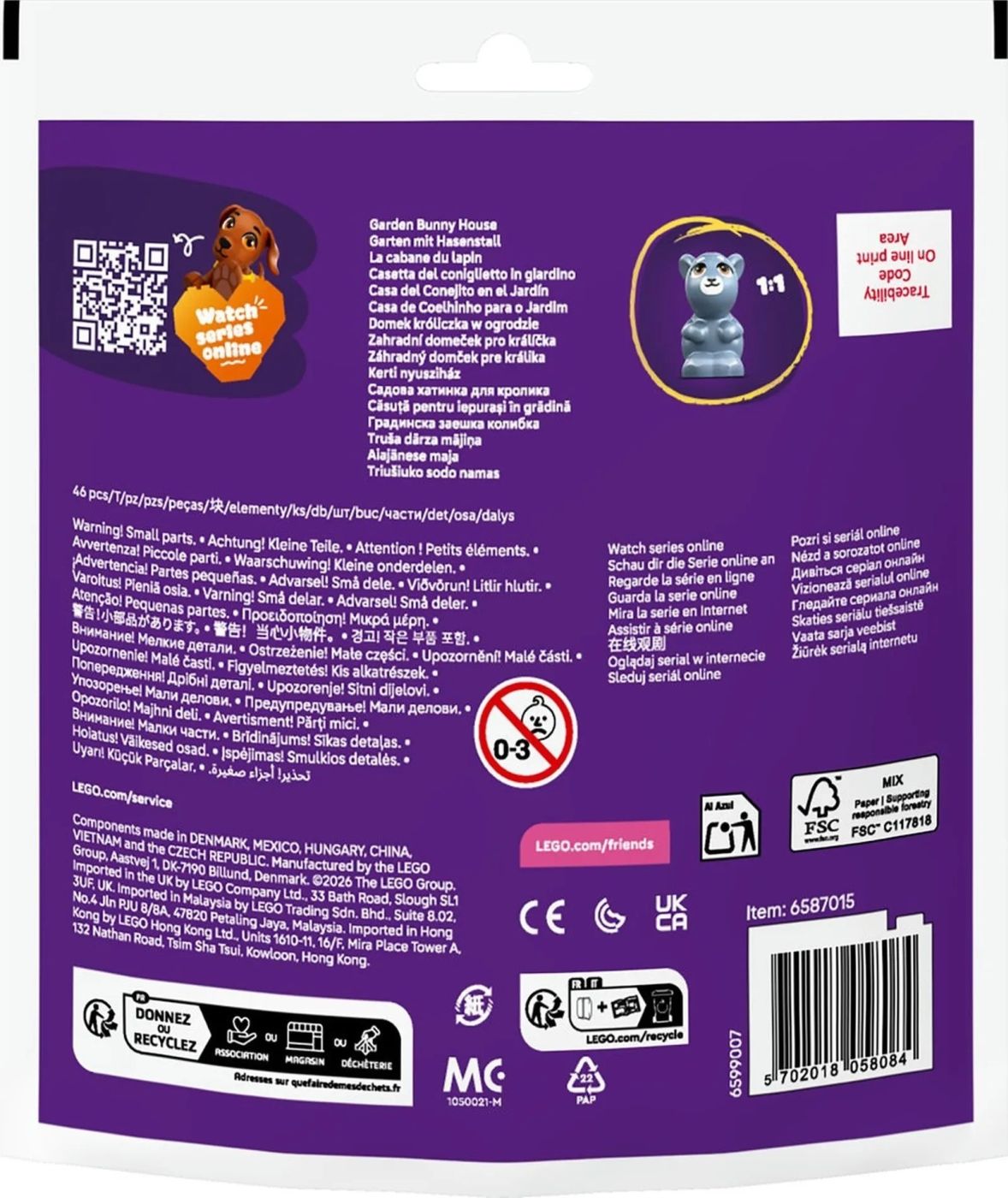 Specificatii LEGO FRIENDS CASUTA PENTRU IEPURASI IN