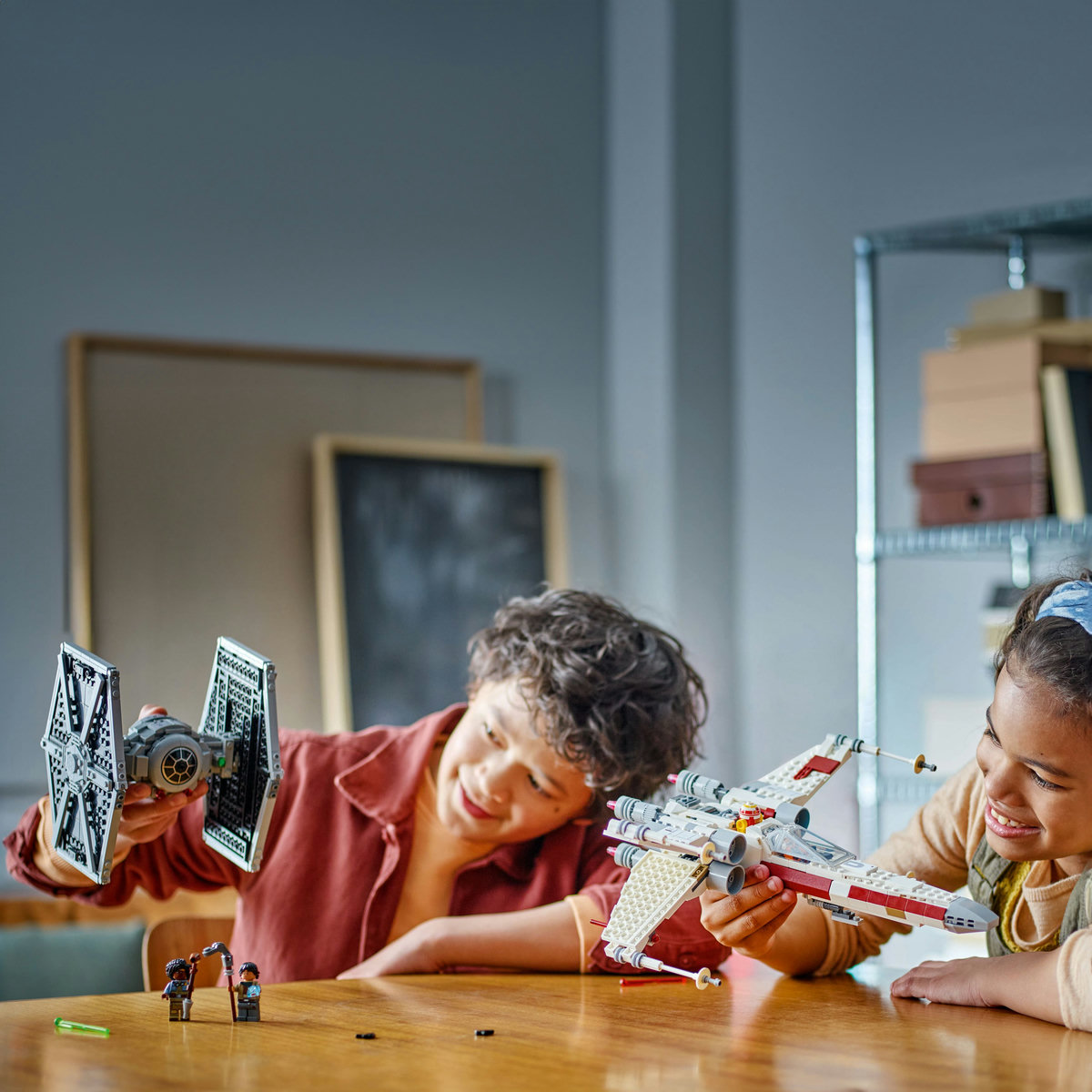 Recreeaza nave de lupta combinate din productia speciala Disney+ LEGO® Star Wars™: Rebuild the Galaxy cu setul de constructie Hibrid TIE Fighter si X-Wing (75393) pentru copii. Un cadou LEGO cool pentru baieti, fete si orice fan Star Wars, setul include un +u201eTIE-wing+u201d si un +u201eX-fighter+u201d, fiecare cu o carlinga cu deschidere pentru o minifigurina LEGO si 2 lansatoare cu arc. Scoate stifturile de blocare pentru a detasa aripile de carena fiecarui vehicul construibil si reconstruieste-l pentru a crea familiarele si emblematicele TIE Fighter si X-wing. Aripile lui +u201eTIE-wing+u201d/X-fighter sunt reglabile pentru modurile de zbor si atac si, odata reconstruit ca X-wing, trenul de aterizare retractabil poate fi folosit.