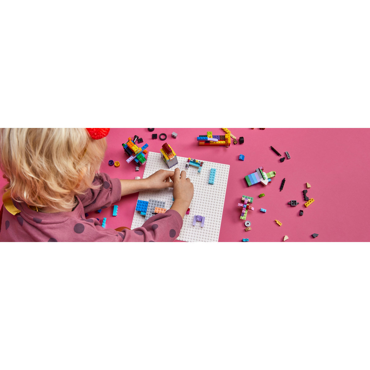 Inspiră constructorii LEGO cu o gamă uimitoare de posibilităţi de construcţie +u2013 de la lacuri îngheţate la peisaje arctice, pârtii de schi însorite la ţinuturi minunate de iarnă. şi cine spune că baza trebuie să fie jos? Această placă de bază de calitate are suficientă priză pentru a susţine cărămizile de construcţie LEGO în orice unghi, chiar şi cu susul în jos! şi când construcţia se termină, placa de bază cu priză fermă oferă copiilor o modalitate de a-şi transporta şi a-şi expune în siguranţă creaţiile.