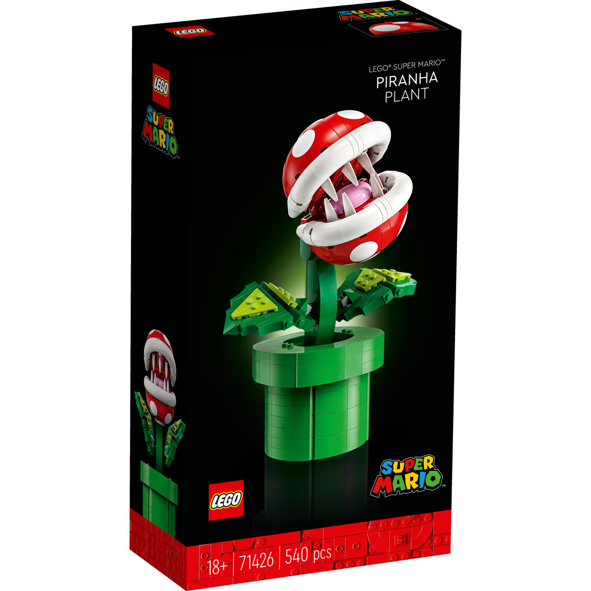 Dedică-ţi timp să te cufunzi într-o provocare de construcţie cu figurina articulată LEGO® Super Mario™ Plantă piranha (71426). Recreează caracteristicile distincte ale unei plante piranha şi poziţionează-i capul, gura, tulpina şi frunzele. Expusă în conducta construibilă, planta reprezintă o piesă decorativă atractivă acasă sau la birou. (A se nota că acest model nu are funcţii de joacă digitale)