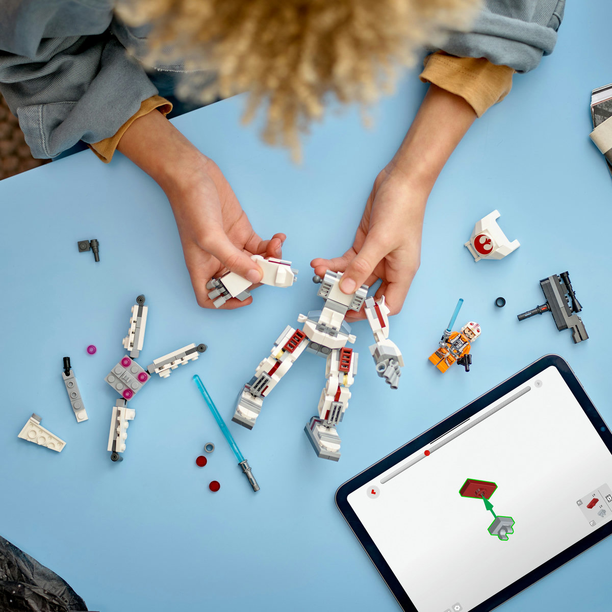 Acest robot X-wing LEGO Star Wars e conceput să fie uşor de micii Jedi. Intensifică experienţa lor creativă cu aplicaţia LEGO Builder, care conţine instrumente de vizualizare 3D prin apropiere şi rotire şi permite constructorilor să-şi monitorizeze progresul şi să salveze seturi.