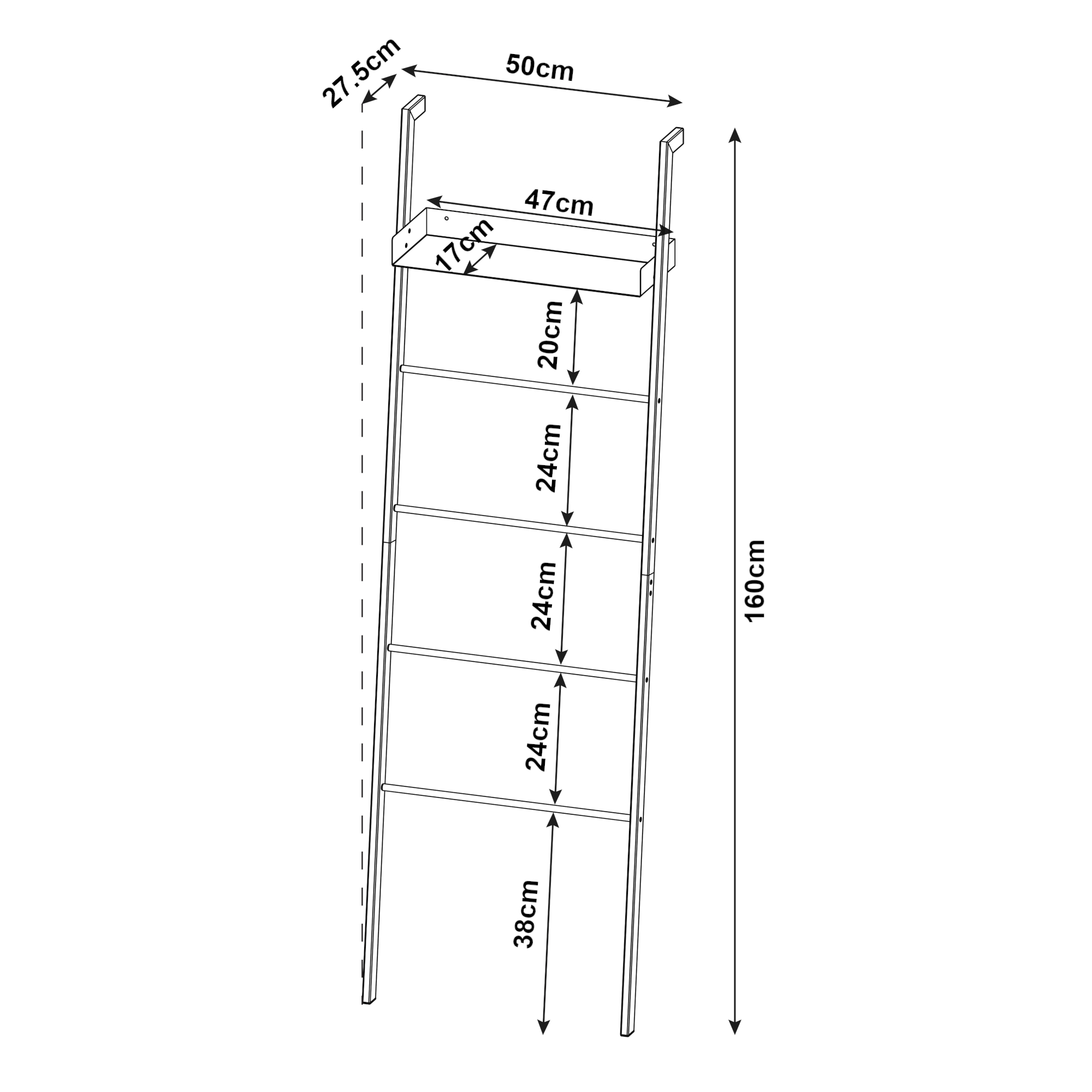 - Gesamt (HxBxT): 160 x 50 x 27,5 cm