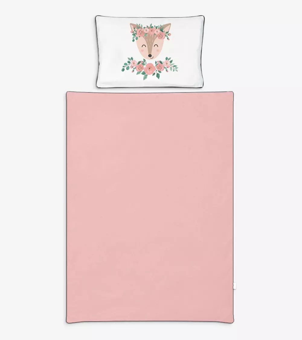 Ofera-i micutului un somn linistit cu aceasta lenjerie de pat bebe 2 piese KLUPS Nature&Love Rose, realizata din 100% bumbac delicat la atingere. Designul in nuante de roz, completat de imprimeul simpatic cu caprioara, se potriveste perfect in camera bebelusului si adauga un plus de farmec.