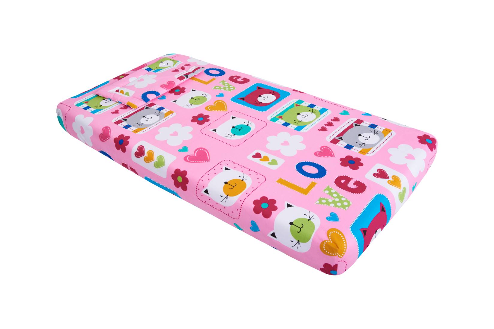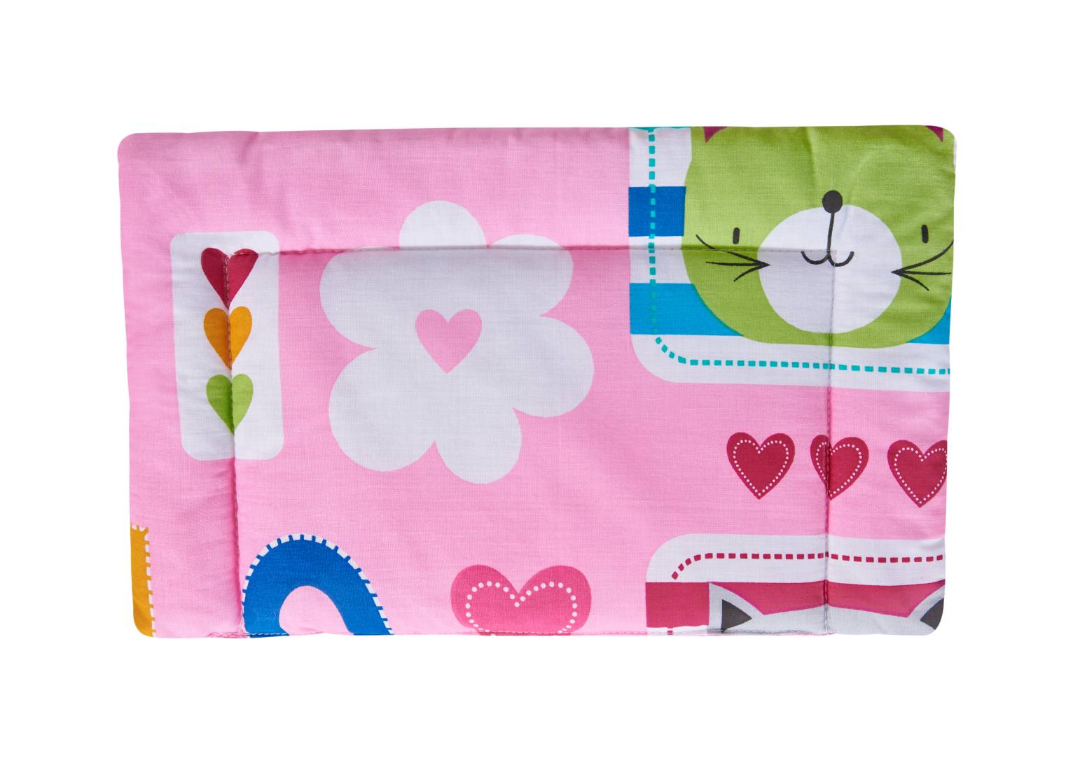 Oferă-i celui mic un somn liniștit cu această lenjerie de pătuț bebe SomnArt, realizată din 100% bumbac, delicat cu pielea sensibilă. Setul include un cearceaf cu elastic 60x120 cm, o pilotă ușoară 80x110 cm și o pernă joasă pentru bebeluși 20x35 cm, perfecte pentru utilizarea zilnică. Modelul vesel cu pisicuțe, în nuanțe de roz și alb, adaugă un plus de farmec camerei copilului.