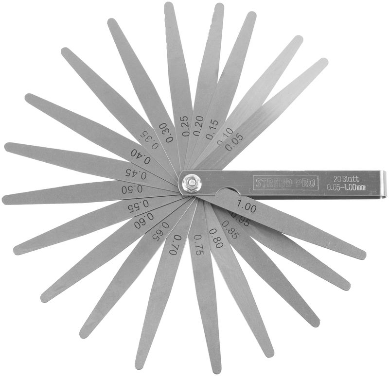Setul de lere calibrate Strend Pro TG-165 este potrivit pentru măsurarea jocurilor și a spațiilor dintre două suprafețe (de exemplu la reglaje, mecanică fină sau întreținere). Lamelele sunt marcate cu grosimea, iar formatul tip evantai permite alegerea rapidă a dimensiunii potrivite.