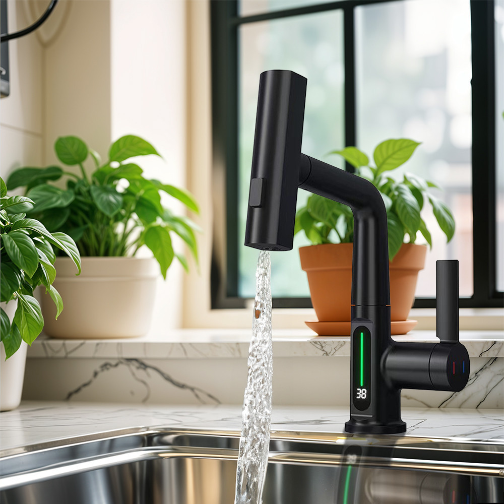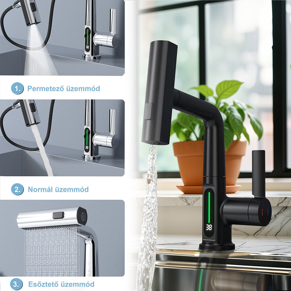 Leziter Baterie chiuvetă Mara cu cap multifuncțional și afișaj digital, neagră Mobalis Homvera