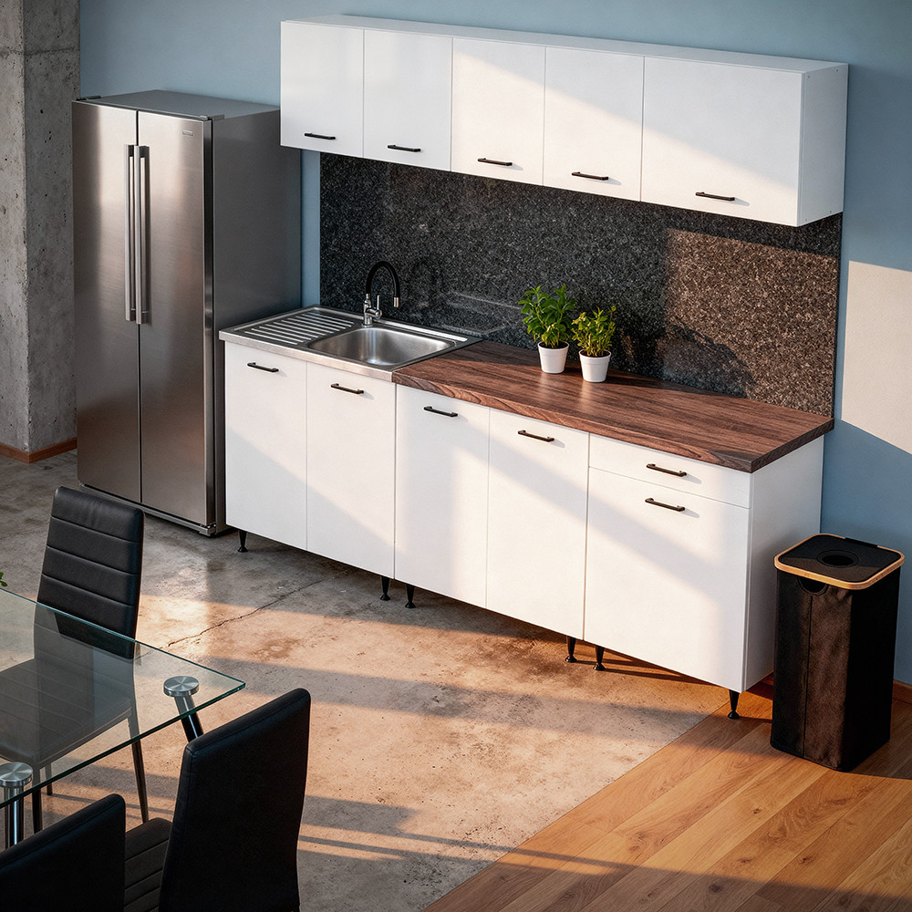 Leziter Bucătărie Primo 220 alb, cu blat rauna sil Mobalis Homvera