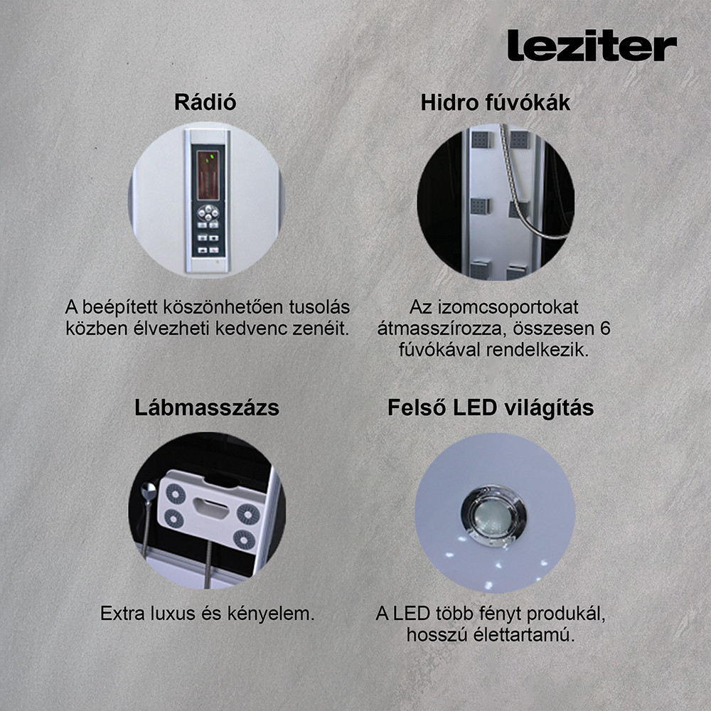 Descriere Leziter Cabină duș hidromasaj Mila -
