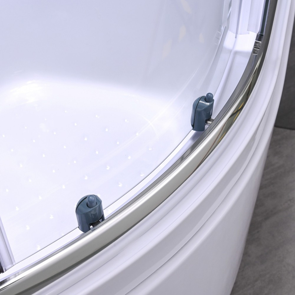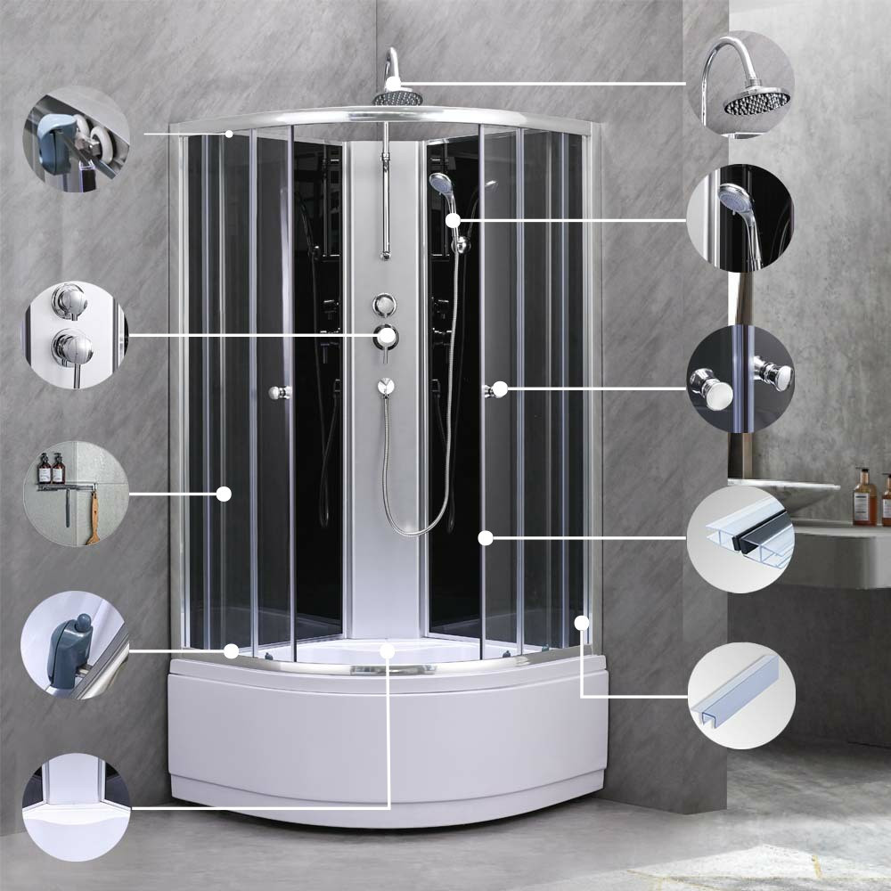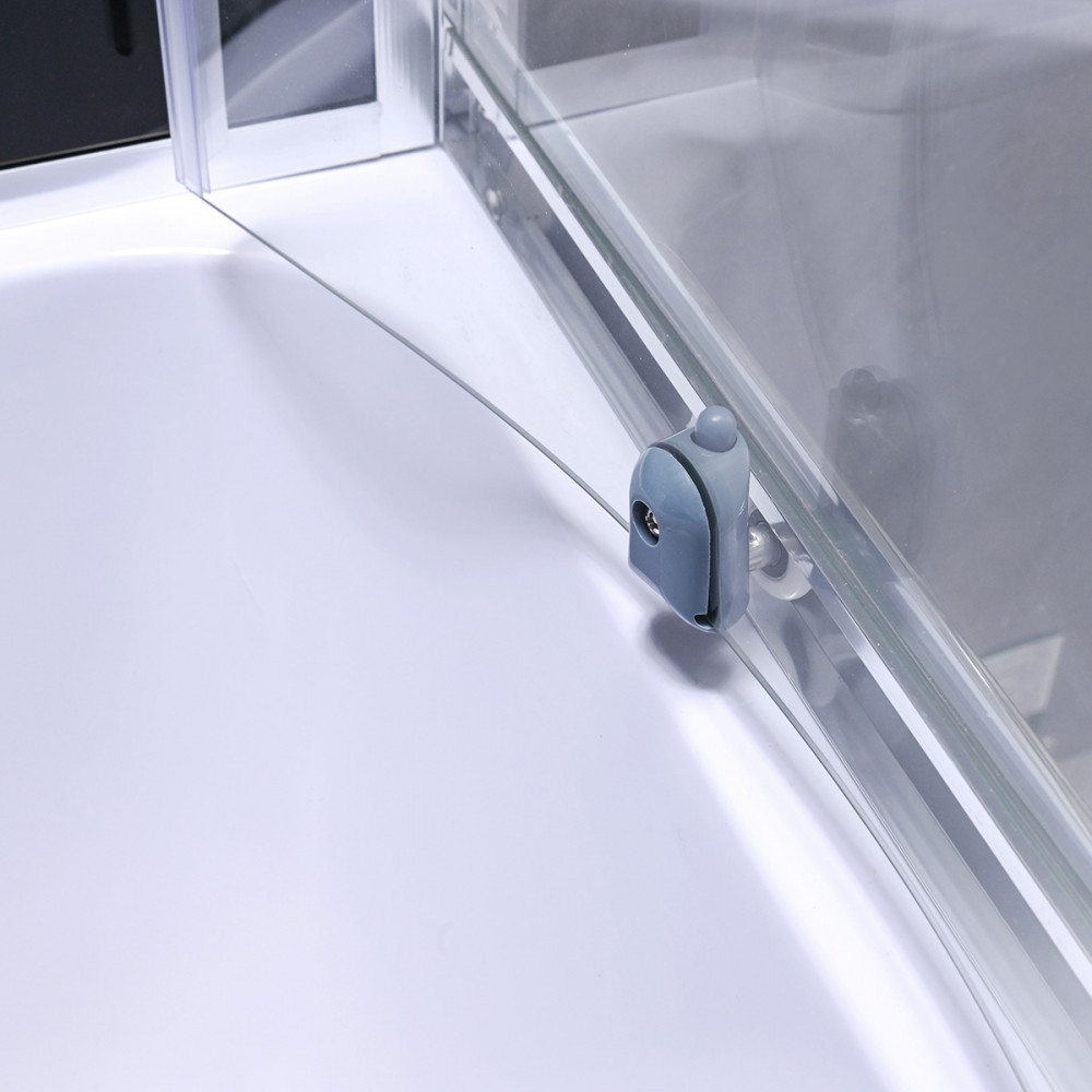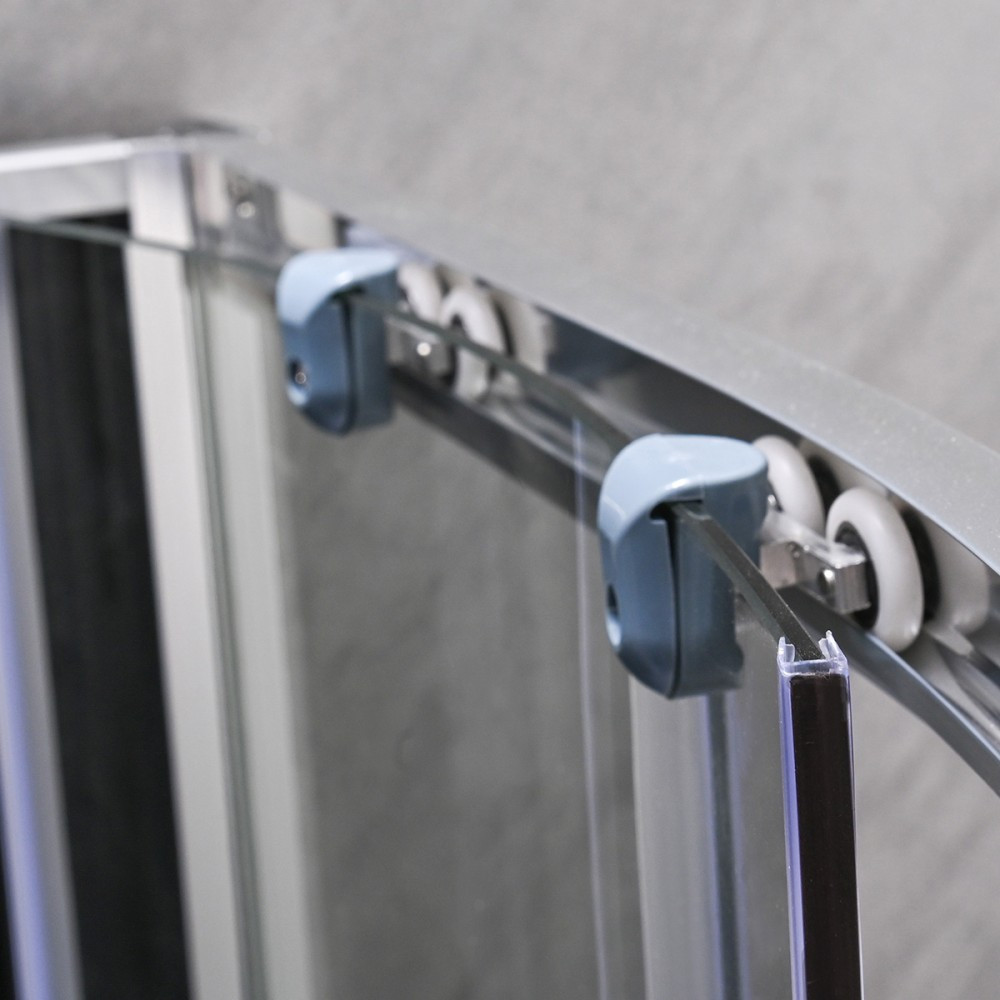 THE Cabina de duș Karolino cu tavă adâncă este fabricată din sticlă securizată transparentă, cu grosimea de 4 mm, completată de o ramă din aluminiu cromat și un perete posterior negru, oferind un aspect elegant. Mânerul metalic estetic al ușii și rolele superioare cu rulmenți dubli garantează o utilizare confortabilă și stabilă. Rolele inferioare detașabile, cu arc, facilitează întreținerea, iar încuietoarea magnetică a ușii asigură o izolație perfectă.