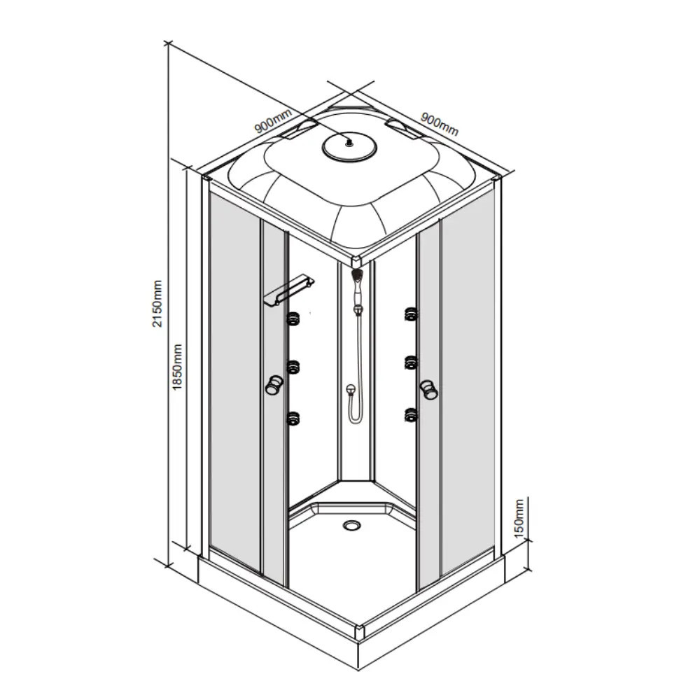 Descriere Leziter Cabină duș pătrată hidromasaj Valerie