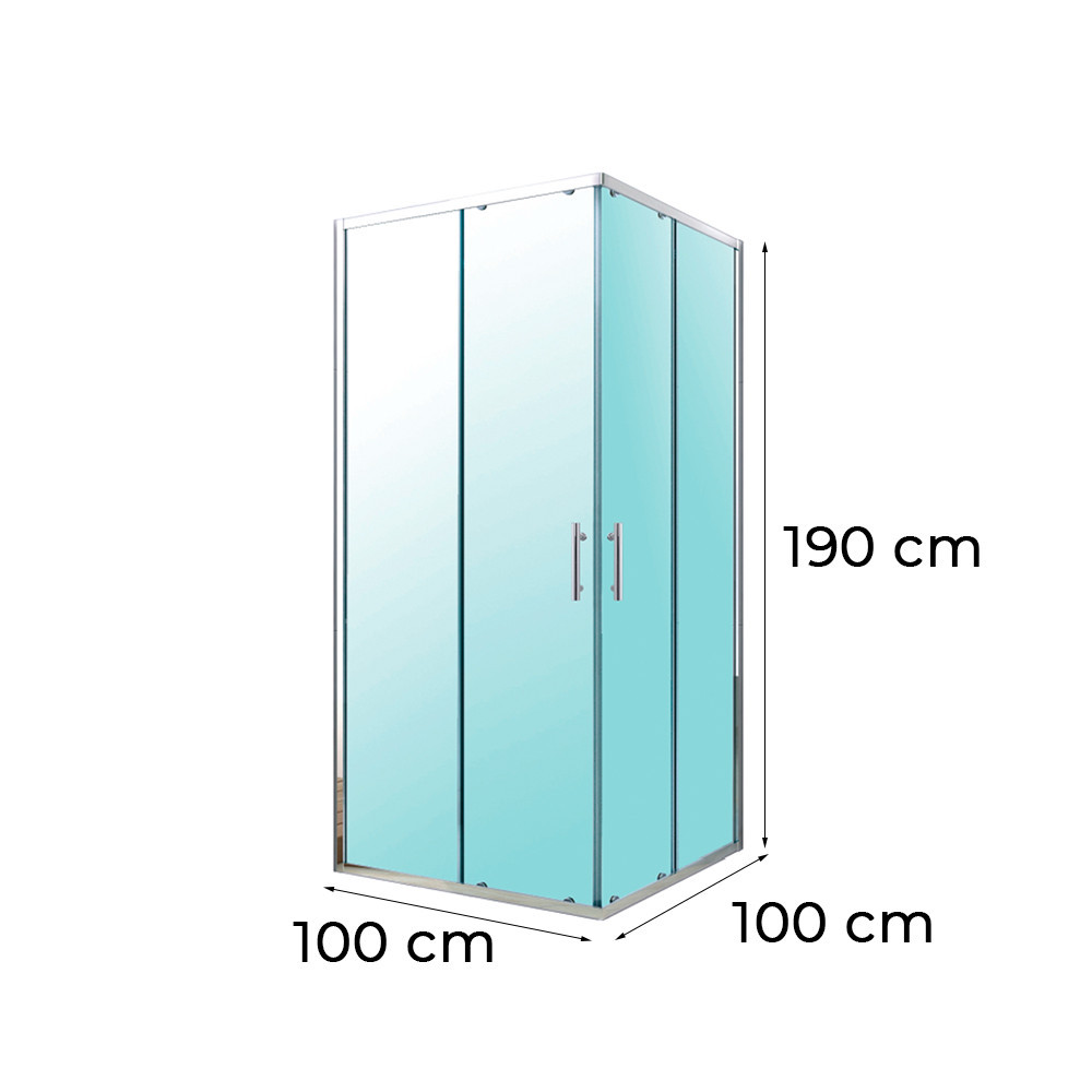 Az átlátszó üvegfelület világosabbá teszi a teret, és nem bontja meg a helyiség optikai egységét. Az 100x100 cm-es méret helytakarékos, mégis kényelmes megoldás kisebb fürdőszobákban is.