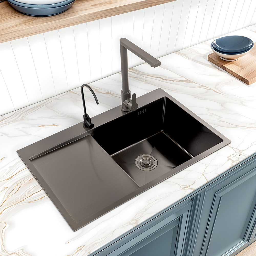 Chiuveta este fabricată din oțel inoxidabil de calitate 304, cu o grosime de 30,8 mm. Acest material nu este doar un favorit al bucătăriilor industriale, ci și al celor care planifică pe termen lung. Este rezistent la coroziune, căldură, impact și zgârieturi cauzate de utilizarea zilnică. Tratamentul de suprafață nanotehnologic formează un strat special pentru a proteja curățenia - respinge grăsimea și murdăria, astfel încât suprafața este întotdeauna igienică și ușor de întreținut.