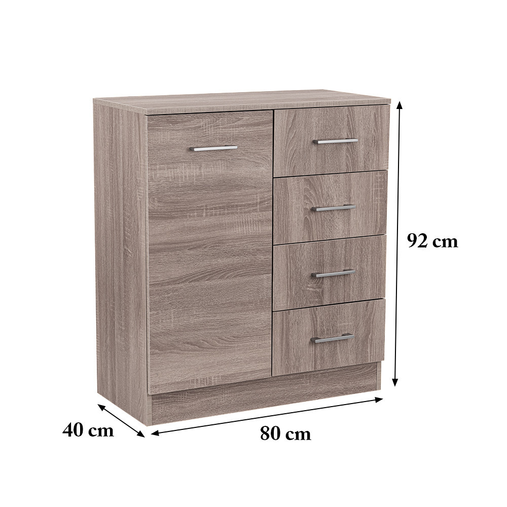 Leziter Comodă Miami cu 1 ușă și 4 sertare 80x92 cm stejar York-stejar York Mobalis Homvera