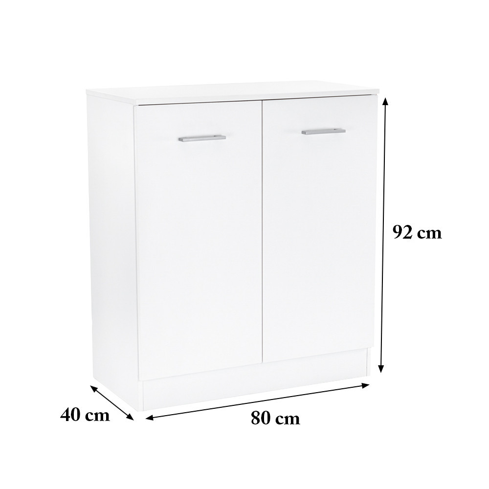 Comoda Miami, cu fața albă și corpul din stejar York, conferă puritate și eleganță spațiului, în timp ce materialul de calitate al plăcilor de mobilier garantează durabilitate și rezistență. Dimensiunile sale - 40 cm adâncime, 80 cm lățime, 92 cm înălțime - sunt ideale pentru orice cameră. În spatele ușilor cu două canate care se deschid ale comodei se află 3 rafturi , perfecte pentru depozitarea hainelor, cărților sau chiar a echipamentelor de birou. Designul modern este completat de mânere din plastic cu efect cromat mat , care fac aspectul și mai curat.