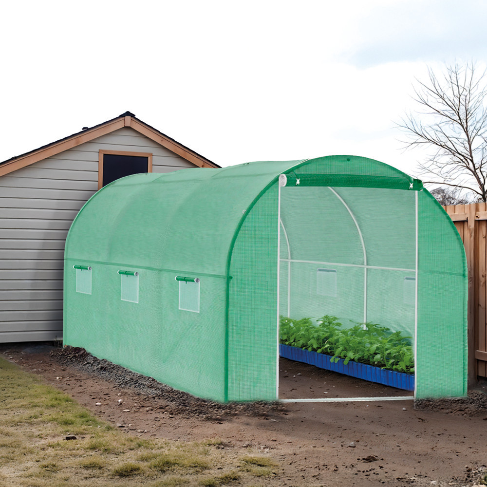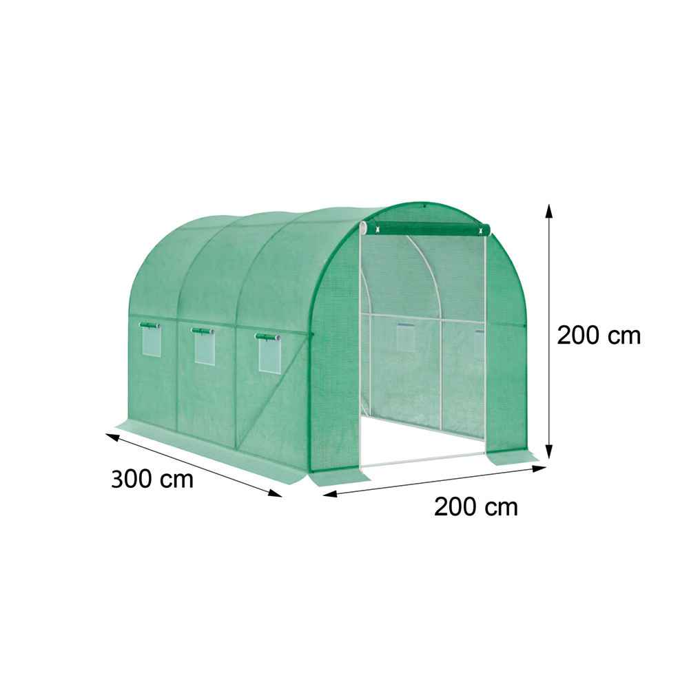 Cortul modern din folie este echipat cu o ușă pliabilă practică, care facilitează accesul. Cele șase orificii de ventilație laterale ale cortului sunt prevăzute cu plasă pentru a împiedica pătrunderea insectelor, asigurând în același timp un flux de aer adecvat. Ferestrele ajută la reglarea umidității, crescând astfel randamentul culturilor. Cortul din folie poate fi utilizat în orice condiții meteorologice, fiind o soluție ideală pentru cultivarea plantelor în grădină sau pe proprietate.